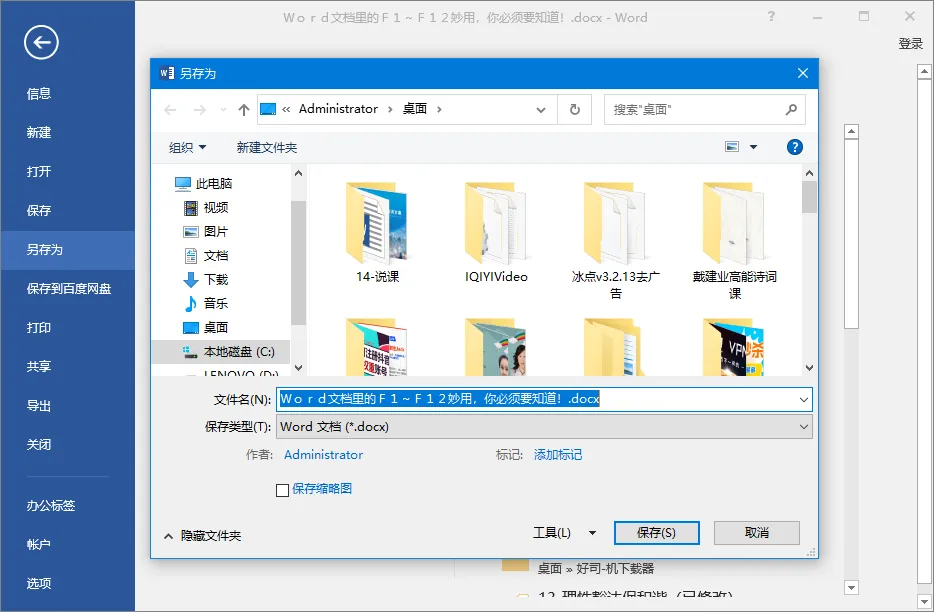 F12其实就是我们的“另存为”功能,可以方便的把文档另存到其他盘符