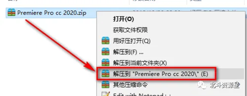 1.鼠标右键解压到“Premiere Pro cc 2020” -