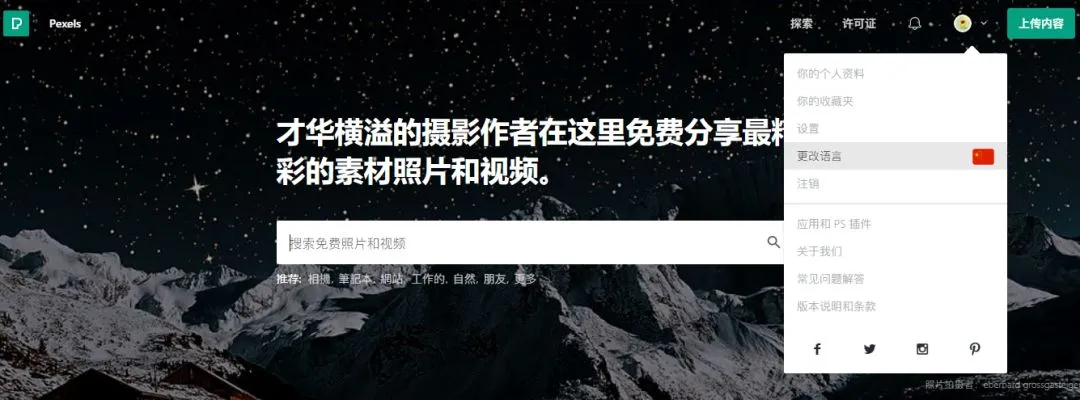 Pexels 和 Pixbay 都支持中文显示和中文搜索。