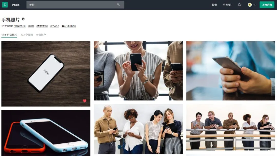 如你所见,在 Pexels 上搜索手机时,第一张是一台全面屏手机图。