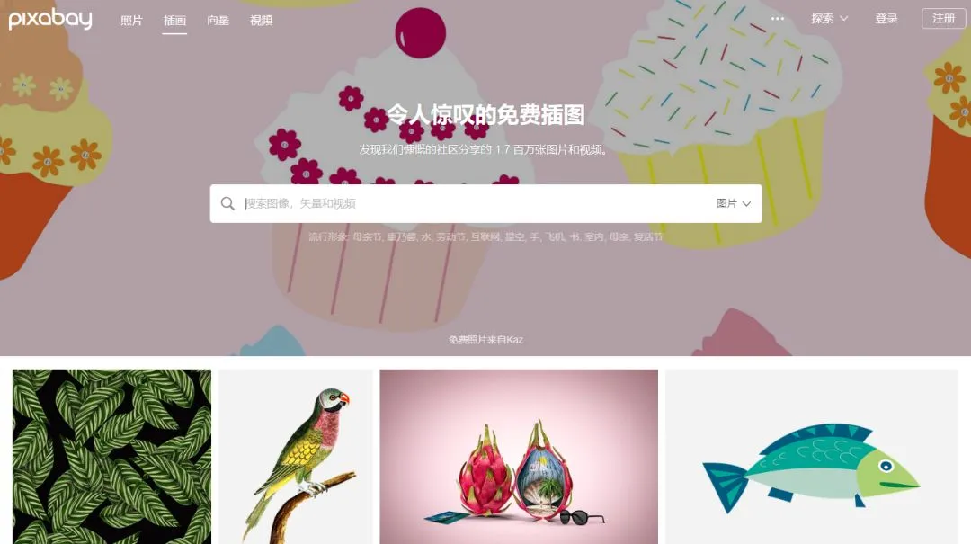 哦,对,Pixbay 同时还是一个专业的插画和矢量素材库。