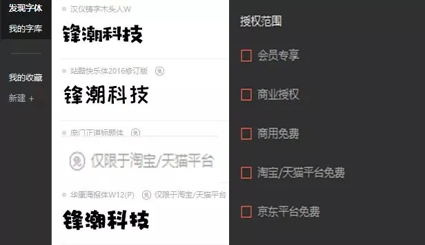 对免费字体会标注「免」,并帮助筛选授权范围。