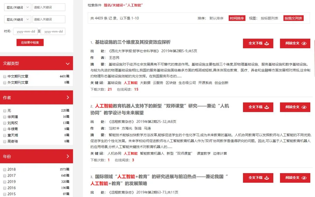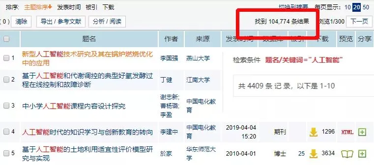 我们以人工智能为关键词,将它与知网对比,比例差不多是1:200。