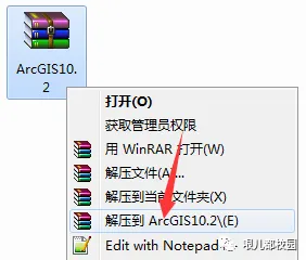 1.鼠标右击软件压缩包,选择“解压到ArcGIS10.2”