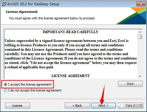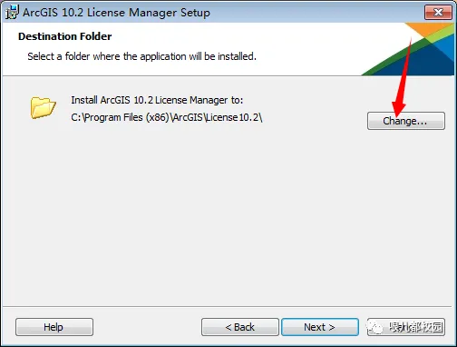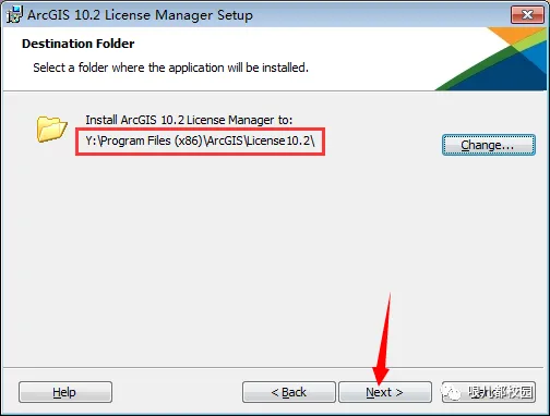 6.选择安装目录,默认安装在 C:\Program Files (x86)\ArcGIS\License10.2(建议安装在除C盘以外的磁盘上,可以直接将C改成Y,安装到Y盘),然后点击“OK”