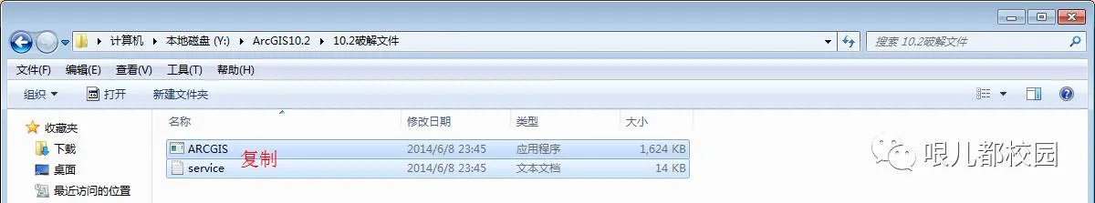 12.打开“ArcGIS10.2\10.2破解文件”文件夹,复制里面的两个文件