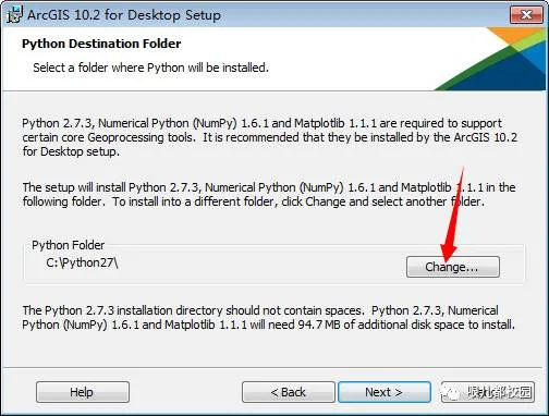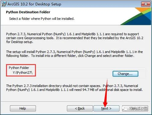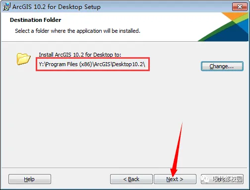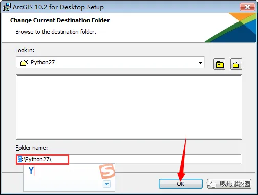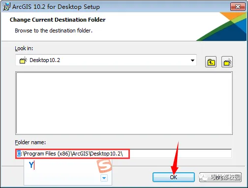 21.选择安装目录,默认安装在 C:\Program Files (x86)\ArcGIS\Desktop10.2(建议安装在除C盘以外的磁盘上,可以直接将C改成Y,安装到Y盘),然后点击“OK”