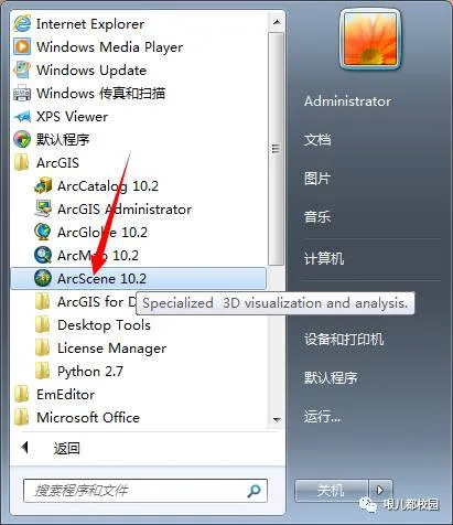 31.点击左下角(开始)菜单栏,进入所有程序,打开“ArcGIS”文件夹,鼠标左键单击“ArcScene 10.2”打开软件