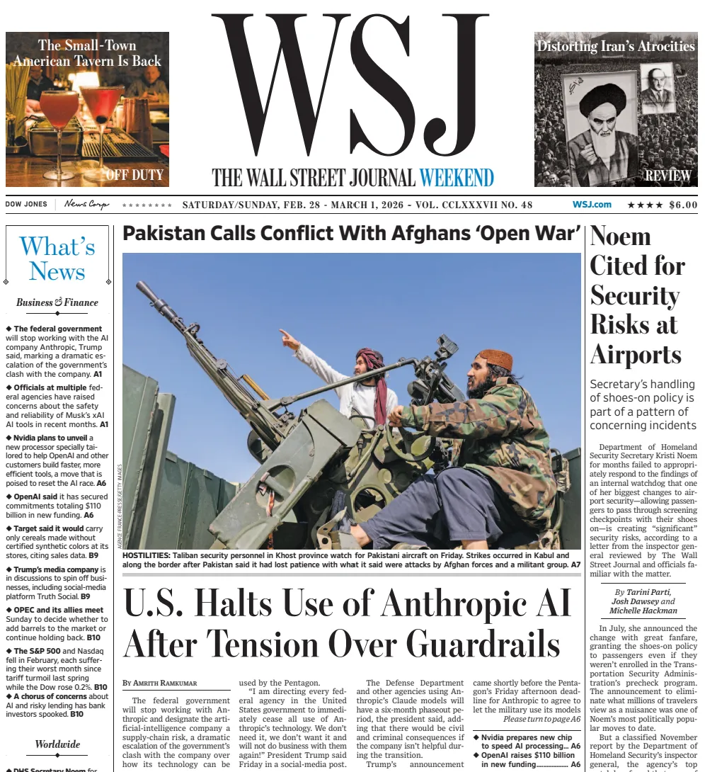 读报 | 华尔街日报-附PDF 今日华尔街👉读报 | 华尔街日报 2026.02.28&03.01 ⬇️ 日更读报 | 6:30 不见不散 ⬇️ PS. 新账号 新老朋友朋友随缘关注 ⬇️ 感谢支持,期待相遇 ❤️