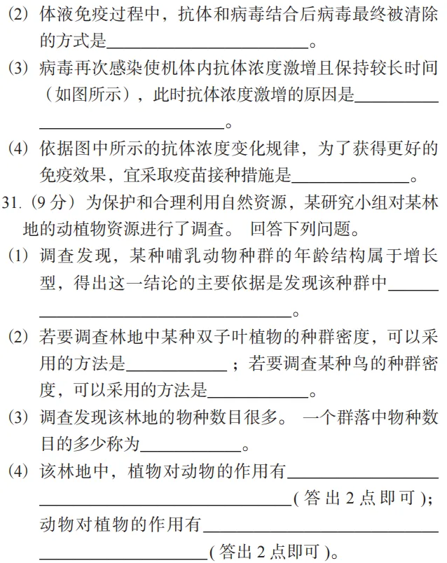 31. (9 分) 为保护和合理利用自然资源,某研究小组对某林地的动植物资源进行了调查。回答下列问题。