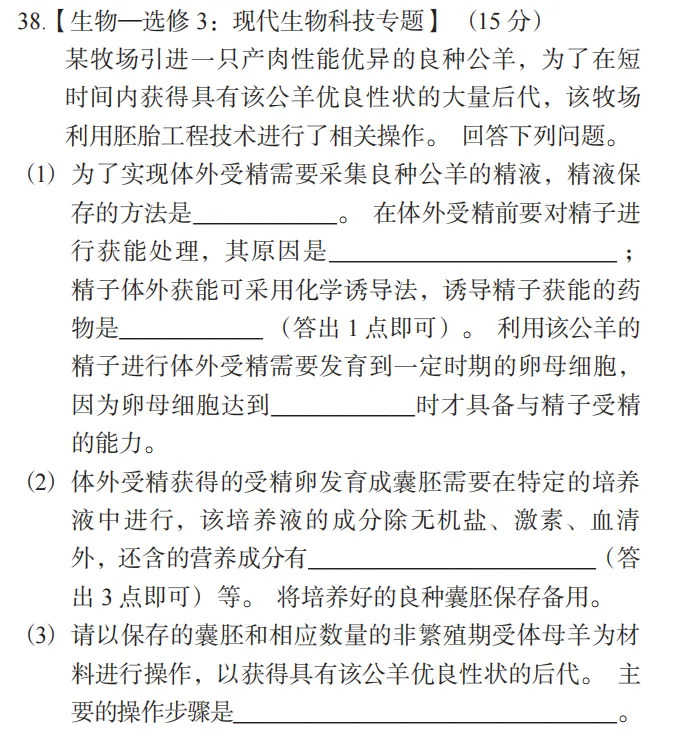 38. 【生物—选修 3:现代生物科技专题】 (15 分)