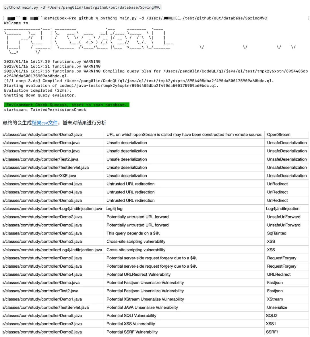 CodeQLpy是基于CodeQL的Java代码审计工具,支持JSP、SpringBoot jar、Maven源码等多种格式。
