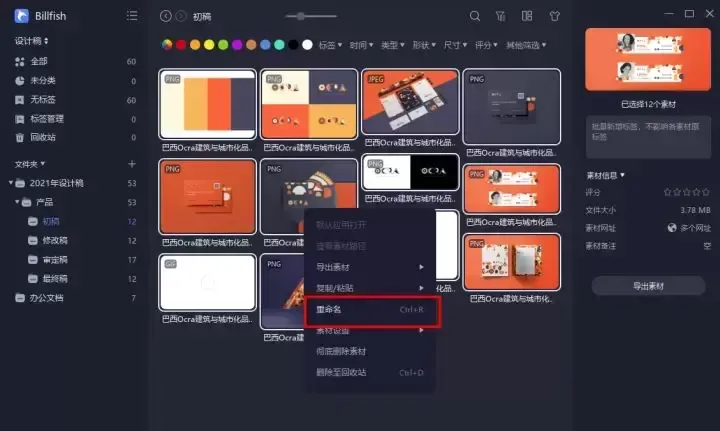 Billfish是一款可以帮我们管理电脑上的设计素材、剪辑素材、办公文档的工具,批量重命名只是其中一个小的功能。