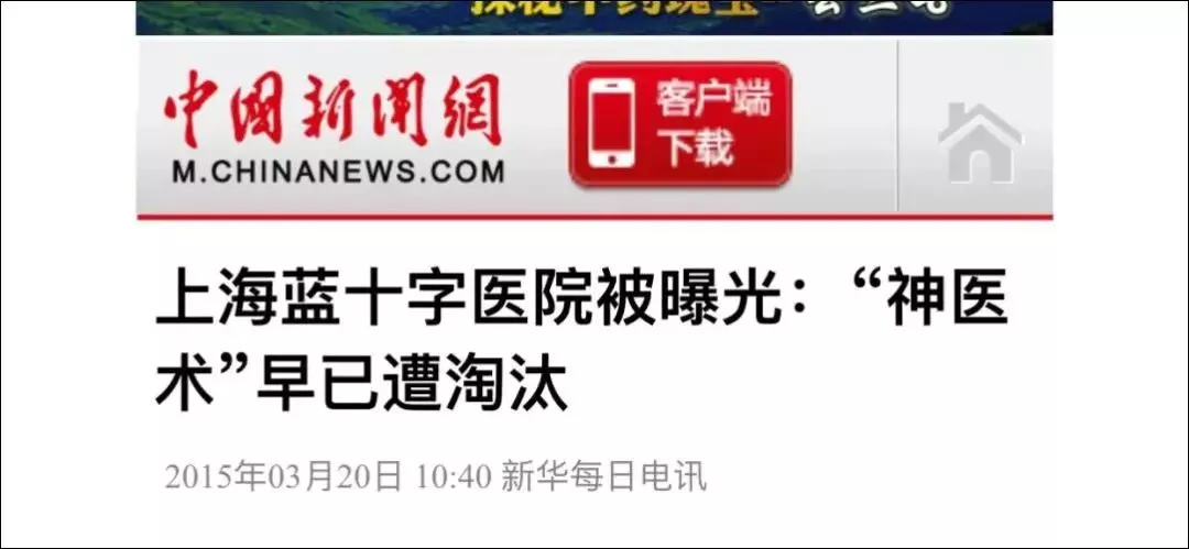新华网于2015年发布的该文章称,上海蓝十字医院宣称拥有全世界领先的技术,能让十年“帕金森”一朝除,力克了帕金森这个世界性难题,而记者调查后却发现,宣传与事实严重不符。