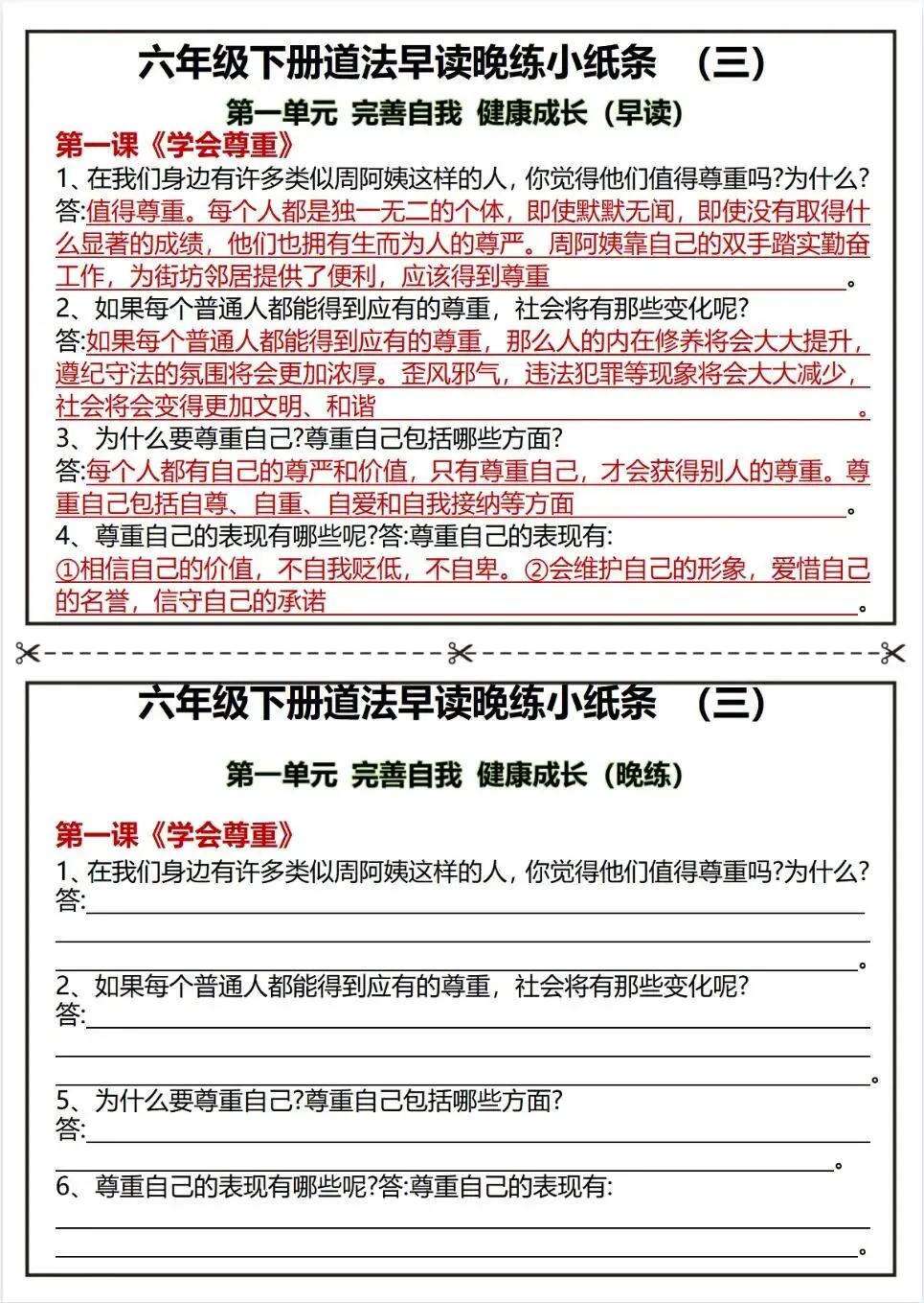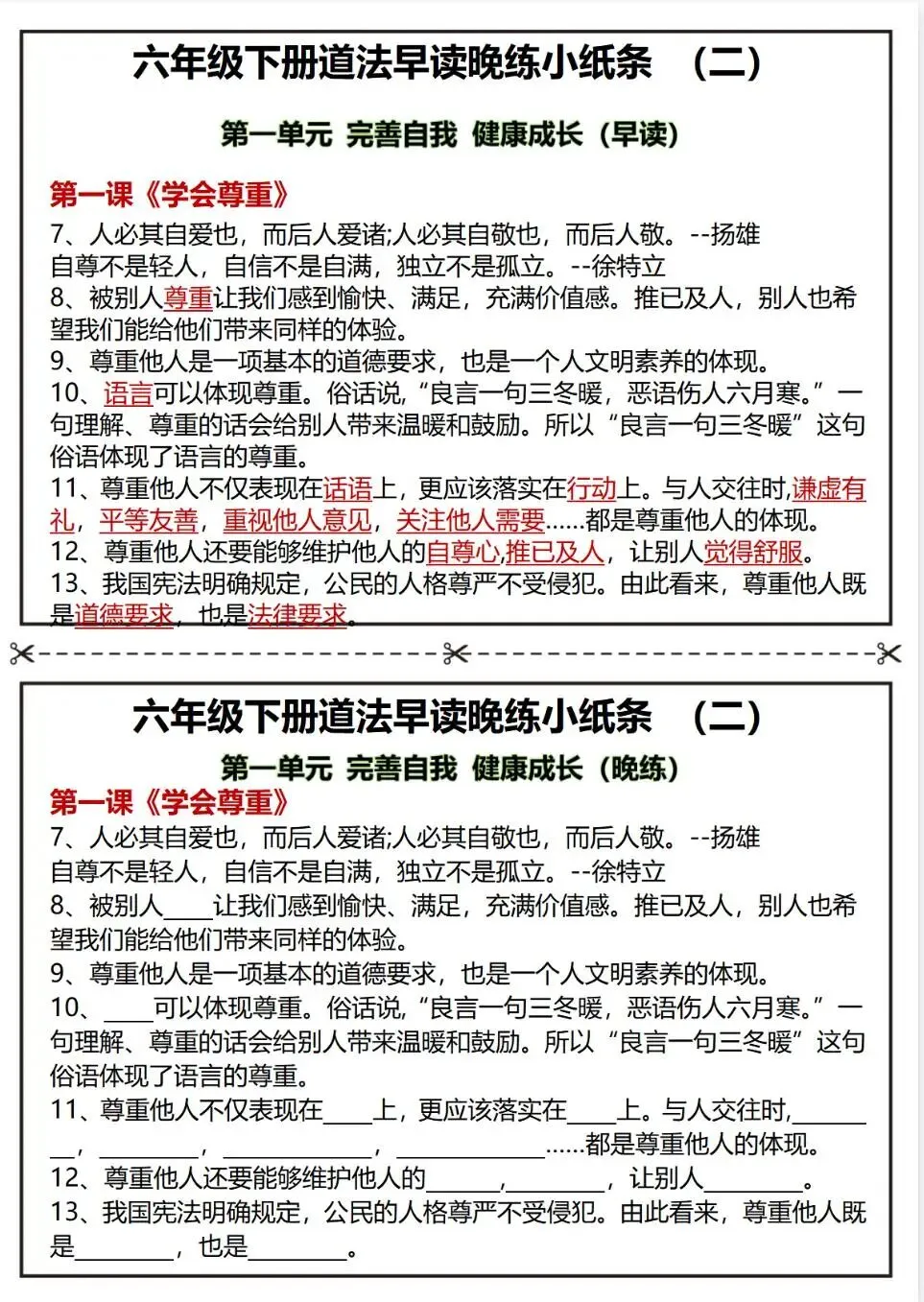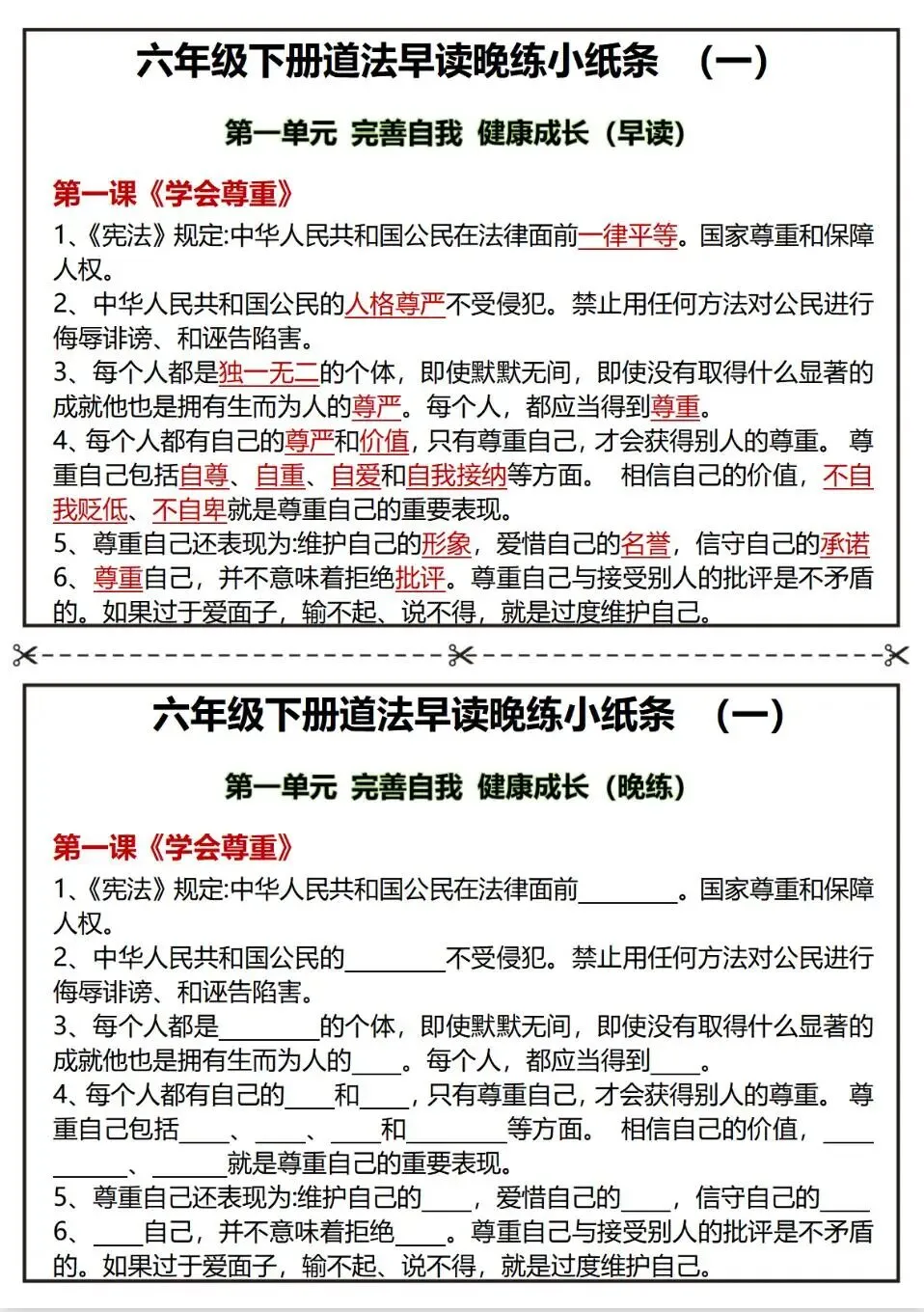 六下道法知识点早背晚默核心考点汇总;电子版可打印
