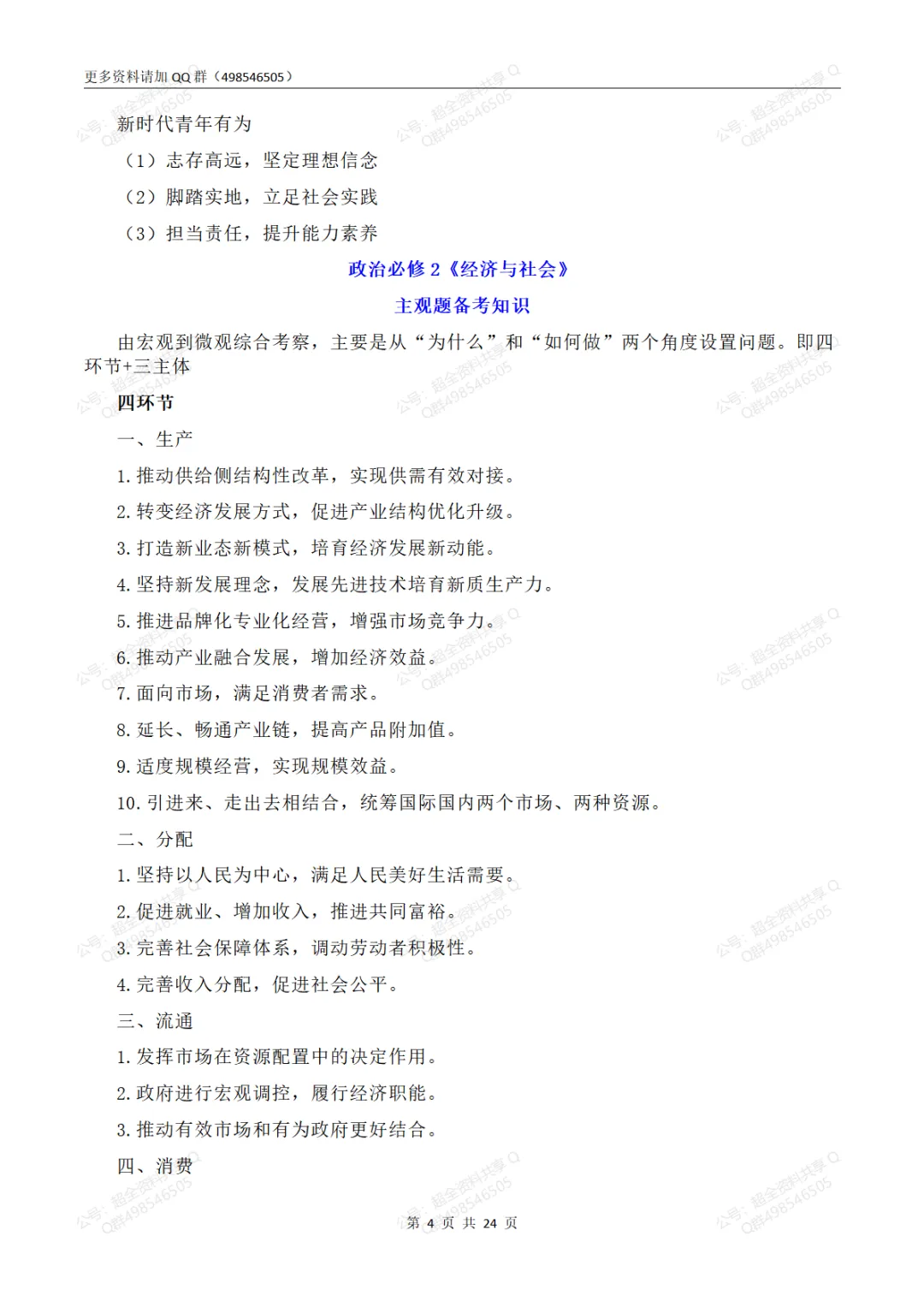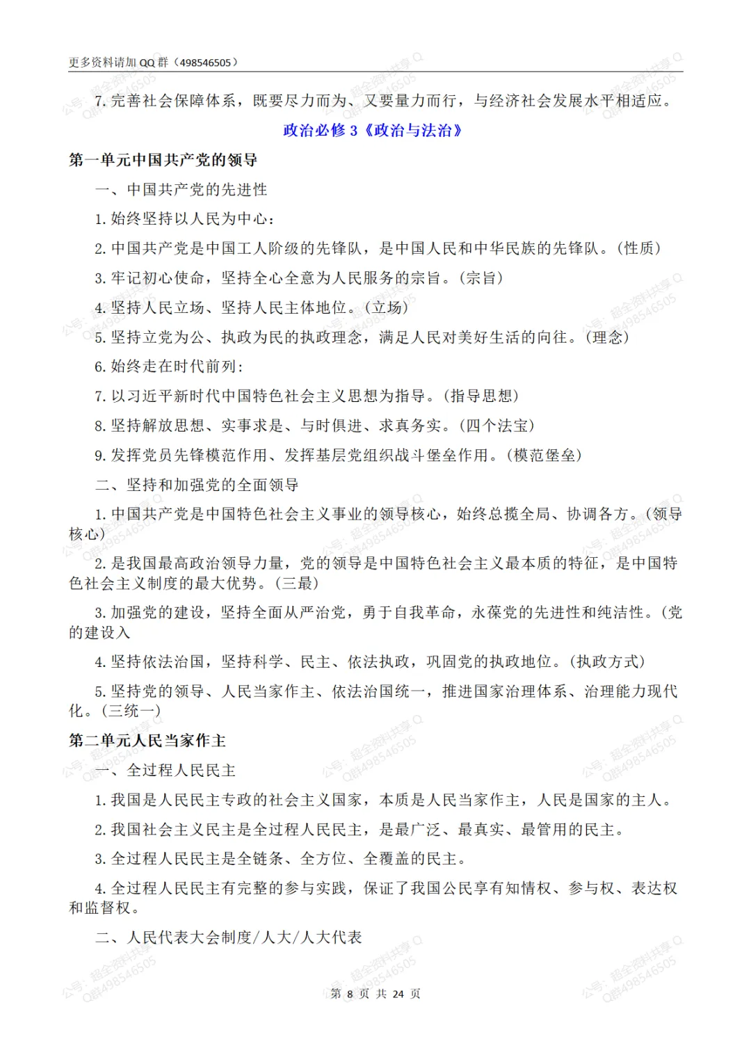 2026高考政治必修部分重点知识梳理(pdf分享) 【最新试卷】 2024北京东城高三【一模】全科试题及答案(pdf分享) 2024北京西城高三【一模】全科试题及答案(pdf分享) 2024北京海淀高三【一模】全科试题及答案(pdf分享) 2025北京海淀区高一(上)期末卷合集及答案(pdf分享) 2025北京海淀区高二(上)期末卷合集及答案(pdf分享) 2025北京海淀区高三(上)期末卷合集及答案(pdf分享) 2025北京东城区高一(上)期末卷合集及答案(pdf分享) 2025北京东城区高二(上)期末卷合集及答案(pdf分享) 2025北京东城区高三(上)期末卷合集及答案(pdf分享) 2025北京朝阳区高一(上)期末卷合集及答案(pdf分享) 2025北京朝阳区高二(上)期末卷合集及答案(pdf分享) 2025北京朝阳区高三(上)期末卷合集及答案(pdf分享) 2025届高三八省八校联考(全九科)试题及答案(pdf分享) 看文末有获取打印版方式 (完整版24页,部分展示) 上文和下面资料在QQ群498546505下载 【高中政治知识总结】 1.高中政治必修1知识点整理(2019最新版)(pdf分享) 2.高中政治必修2知识点整理(2019最新版)(pdf分享) 3.高中政治必修3知识点整理(2019最新版)(pdf分享) 4.高中政治必修4知识点整理(2019最新版)(pdf分享) 5.高中政治必修一《经济生活》知识结构图(pdf分享) 6.高中政治必修三《文化生活》知识结构图(pdf分享) 7.高中政治必修四《生活与哲学》知识结构图(pdf分享) 8.高考政治经济生活选择题精选100题(pdf分享) 9.高考政治文化生活选择题精选100题(pdf分享) 10.高中政治人教版选修3《国家和国际组织常识》知识提纲(pdf分享) 11.统编版高中政治必修三《政治与法治》知识点梳理(pdf分享) 12.高中政治必修3《政治与法治》核心考点+易错易混(共40页)(pdf分享) 13.高中政治必修4《哲学与文化》知识点+易错易混+答题模板(pdf分享) 14.高中政治统编版必修一《中国特色社会主义》知识点总结(pdf分享) 15.高中政治统编版必修三政治与法治知识梳理(pdf分享) 16.高中政治统编版必修四哲学与文化整理总结(pdf分享) 17.高中政治统编版选择性必修1《当代国际政治与经济》知识提纲(pdf分享) 18.高中政治统编版选修2《法律与生活》知识提纲(pdf分享) 19.高中政治统编版必修2《经济与社会》知识梳理(pdf分享) 20.高中政治统编版选修3《逻辑与思维》知识提纲(pdf分享) 21.人教版高中政治必修一《经济生活》主观题答题常用句总结(pdf分享) 22.高中政治必修1-4选择题必背“易错点”300条(pdf分享) 23.高中政治必修1-4超全易错点总结(pdf分享) 24.新教材高中政治主观题知识问答整理(共30页)(pdf分享) 25.新教材高中政治必修三《政治与法治》核心考点+易错易混(共40页)_01(pdf分享) 26.新教材高中政治必修四《哲学与文化》核心考点+易错易混(pdf分享) 27.高中政治考试中的时政术语归纳(pdf分享) 28.高考政治各部分常考点大整理(pdf分享) 29.高中政治答题模板全套整理(pdf分享) 30.(超详)高中政治知识点归纳汇总(pdf分享) 31.2023高考政治备考热点术语答题模板(pdf分享) 32.高中政治知识点总结(必修一到必修四)(pdf分享) 33.高三政治必背知识点(精华版)(pdf分享) 34.人教版高中政治复习资料[全套](pdf分享) 35.人教版高中政治会考复习资料全套(pdf分享) 36.高中政治必修一至四知识点总结(经济、政治、文化、哲学生活)(pdf分享) 37.高考政治主观题背诵清单(pdf分享) 38-2023高考政治四本教科书主干知识总结(pdf分享) 39.高中政治易错易混点整理(pdf分享) 40.高中政治必修1 《中国特色社会主义》(易混易错)(pdf分享) 41.高中政治选择性必修2《法律与生活》主干知识(pdf分享) 42.人教版高中政治会考复习资料(pdf分享) 43.高中政治知识总结(经济+政治+文化+成就)(pdf分享) 44.2023年高中政治学业水平备考主干知识汇编(pdf分享) 45.高考政治统编版必修1-4知识点总结(pdf分享) 46.高中政治教材7本书主要线索指引(pdf分享) 47.高中政治选必一《当代国际政治与经济》选择题精练(pdf分享) 48.高中政治选必二《法律与生活》主观题精练(pdf分享) 49.高中政治必修三《政治与法治》选择题精练(pdf分享) 50.高中政治学业水平考试简明复习提纲(精华版)(pdf分享) 51.北京市高考知识点梳理(政治)(pdf分享) 52.高中政治总复习主观题知识点汇总(pdf分享) 53.高中政治《中国特色社会主义》核心考点(pdf分享) 54.高中政治必修一《中国特色社会主义》主干知识(pdf分享) 55.高中合格考政治知识点精简版(统编版必修1-4)(pdf分享) 56.高中政治教材7本书主要线索指引(pdf分享) 57.新教材高中政治必修一《中国特色社会主义》知识梳理(pdf分享) 58.新教材高中政治必修二《经济与社会》知识点梳理(pdf分享) 59.新教材高中政治必修三《政治与法治》知识归梳理(pdf分享) 60.新教材高中政治必修四《哲学与文化》知识点梳理(pdf分享) 61.新教材高中政治选择性必修1《当代国际政治与经济》知识梳理(pdf分享) 62.新教材高中政治选择性必修2《法律与生活》知识提纲(pdf分享) 63.新教材高中政治选择性必修3《逻辑与思维》知识提纲(pdf分享) 64.高考政治核心知识点总结(pdf分享) 65.高考政治重要时政热点词汇总结(pdf分享) 66.高考政治全套知识点总结(pdf分享) 67.高中政治知识点背诵提纲(经济、政治、文化、哲学生活)(pdf分享) 68.高三政治知识点最全归纳(pdf分享) 69.高中政治学科体系思维导图(pdf分享) 70.高中政治新教材知识点思维导图梳理(pdf分享) 71.高中必