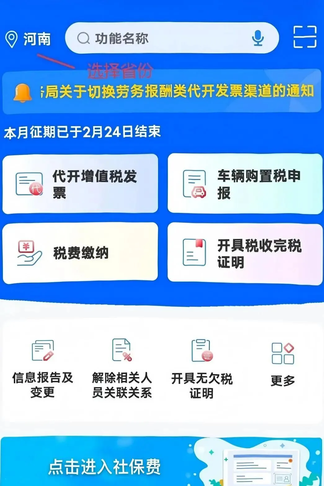 二、选择省份城市下载完成后,打开页面如下图所示,根据自己公司所在的省份选择