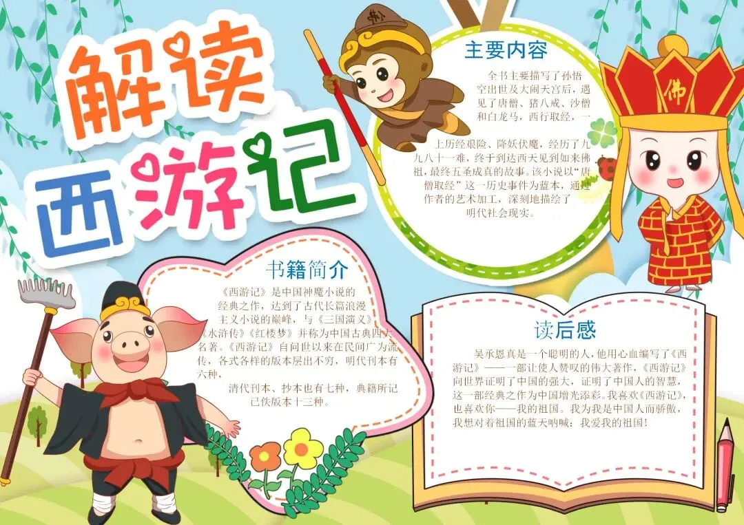 38张西游记读书分享手抄报模板,高清可打印! 可打印 A3/A4/4K/8K/16K/32K 等尺寸内容可修改、线稿可涂色款式简约,容易描线,容易上色每套小报均含彩图 + 线稿 素材预览 — 获取方式 — 通过百度网盘分享的文件:00-西游记小报 链接:https://pan.baidu.com/s/17N_CZJ-kSnBL0e7rbeYy7w?pwd=1zjb 复制这段内容打开「百度网盘APP 即可获取」