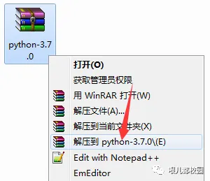 1.鼠标右击软件压缩包,选择“解压到 python-3.7.0”
