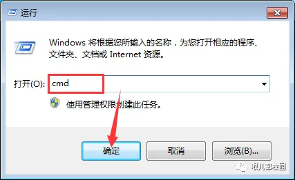 8.按快捷键“Win+R”键打开运行面板,并输入“cmd”,然后点击“确定