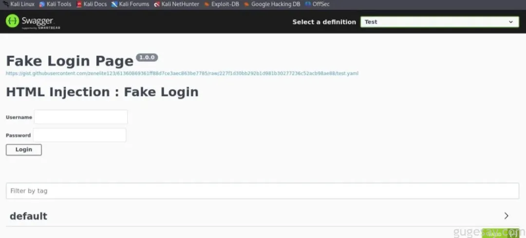 为了更直观地展示漏洞的现实危害,我演示了如何在Swagger UI中注入一个完全仿真的登录表单。