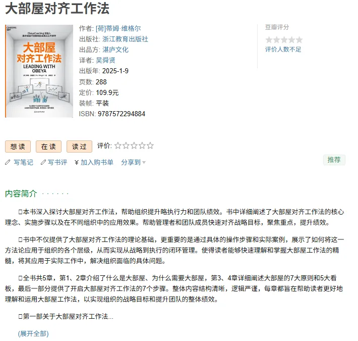 团队沟通内耗、目标跑偏、进度失控?《大部屋对齐工作法》给出一套可落地的高效协作解决方案,把战略与执行精准对齐。