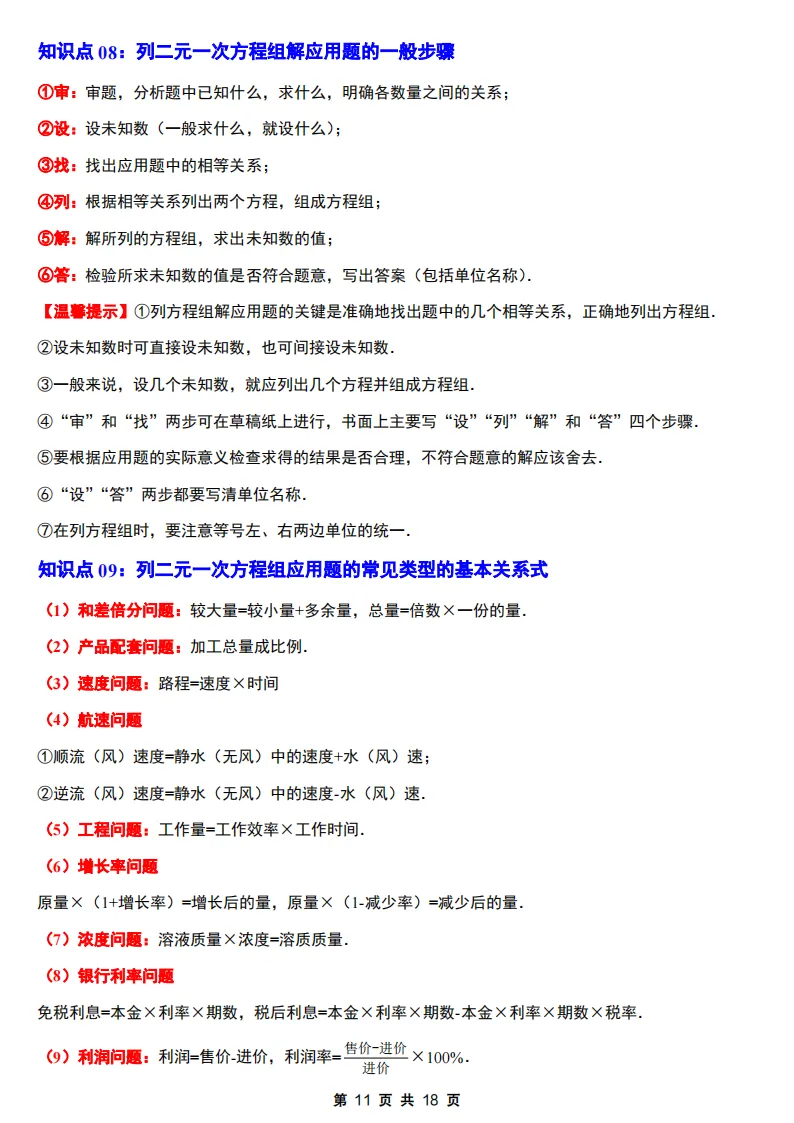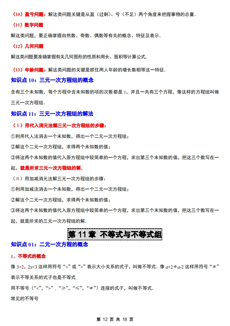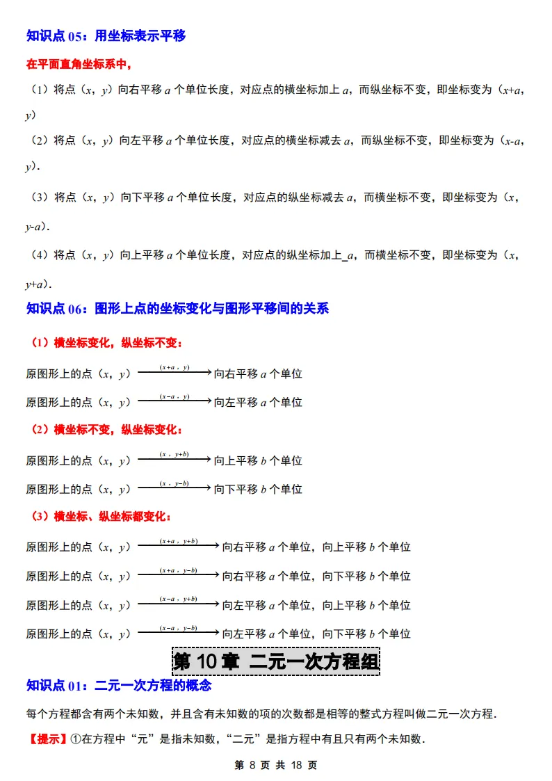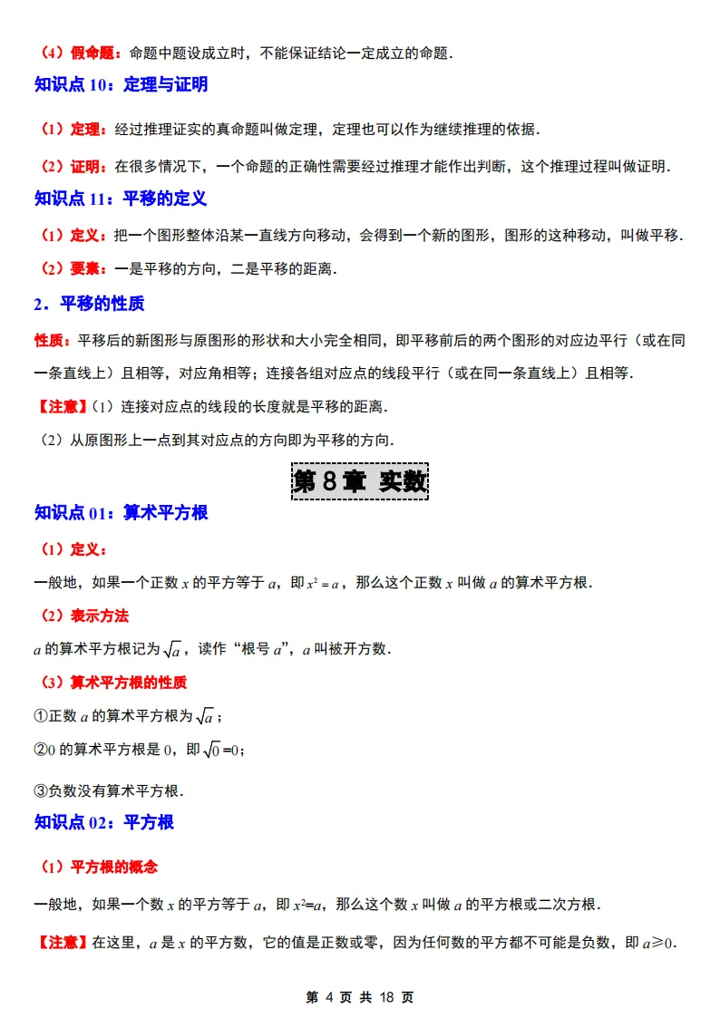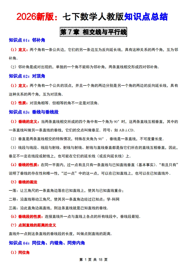 🌸今天给家长分享的是26春新版七年级下册人教版数学《全册详细知识点总结》高清电子版可打印。