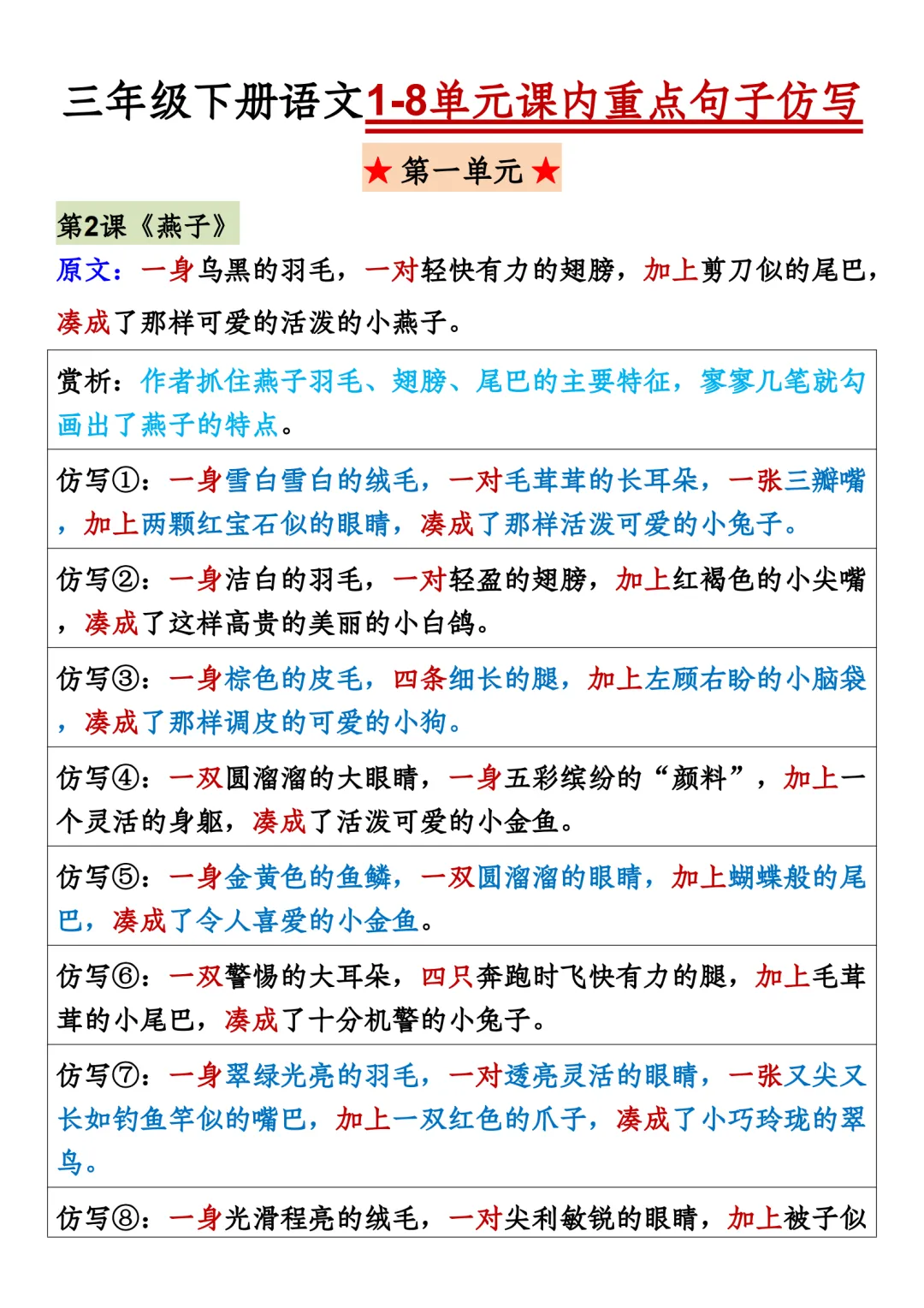 《三下语文必考仿写句子读背版》
