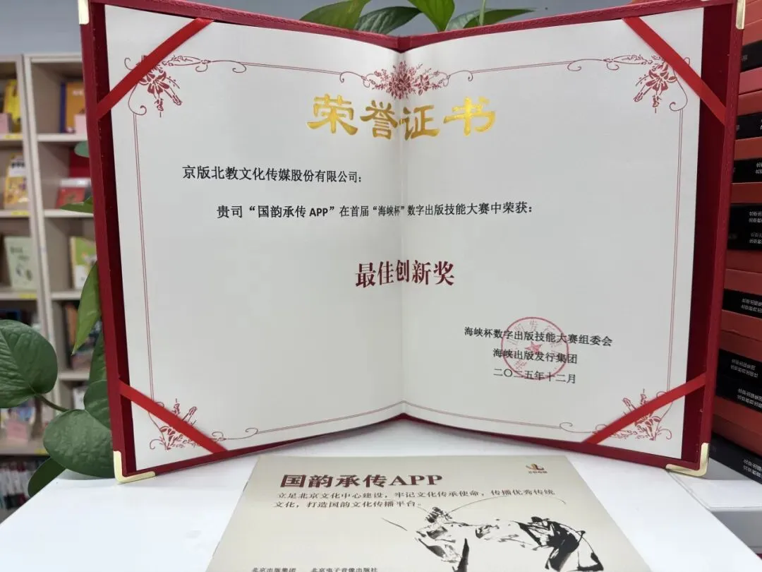 2025年12月,由中国新闻出版研究院、中国音像与数字出版协会指导,福建省总工会、福建省新闻出版局、海峡出版发行集团联合举办的首届“海峡杯”数字出版技能大赛获奖结果公布,国韵承传App获数字出版物组最佳创新奖。在此基础上,主办方特颁发奖金3000元,以资鼓励。