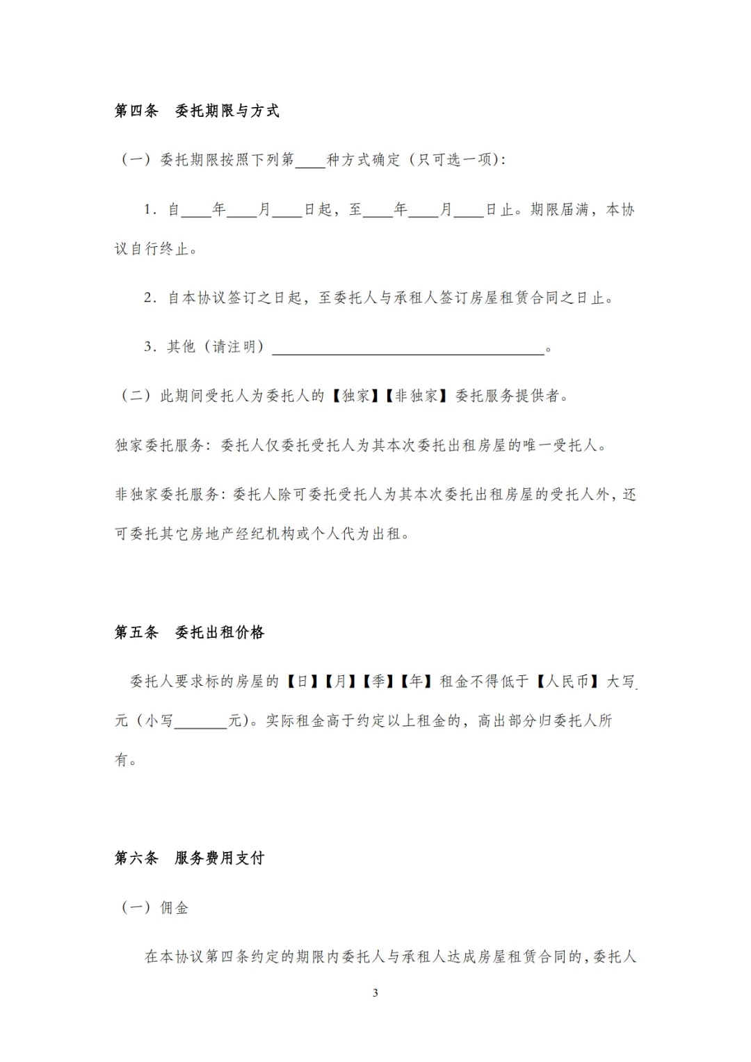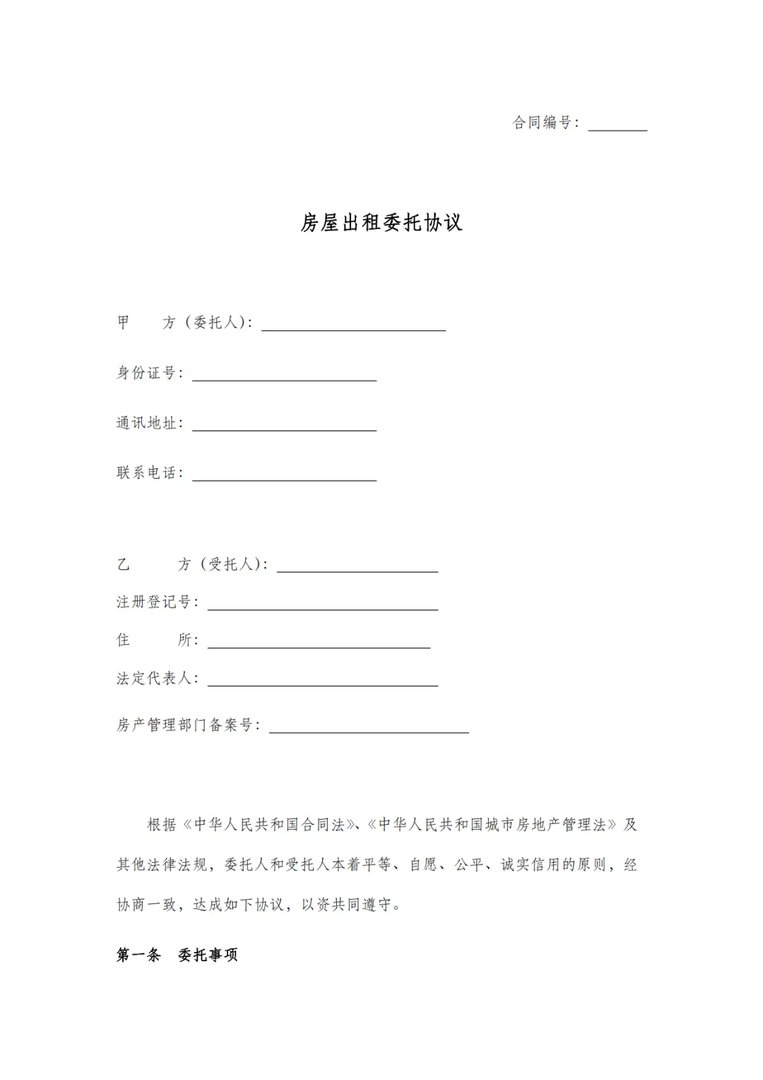 房屋出租委托协议模板,WORD文档电子版,可免费下载打印