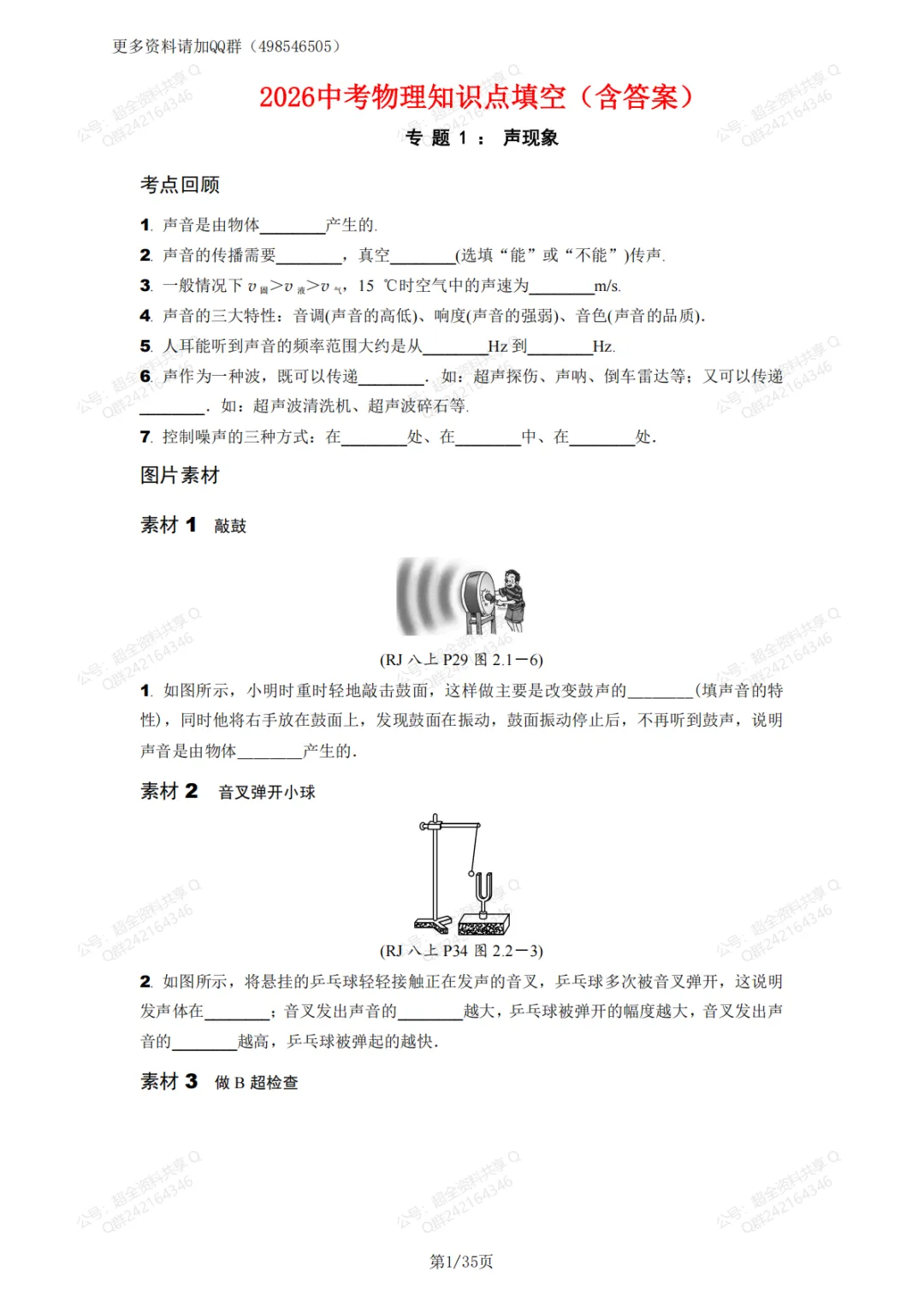 189.人教版八年级上册物理全册知识点(最新版)(pdf分享)
