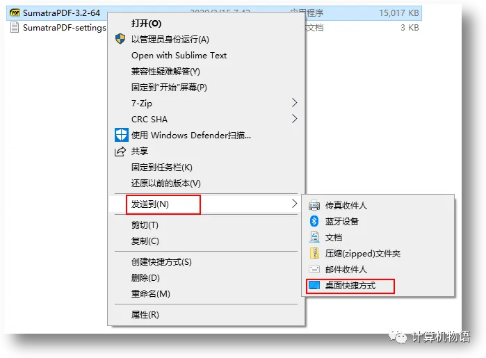 右键 SumatraPDF-3.2-32.exe——发送到——桌面快捷方式