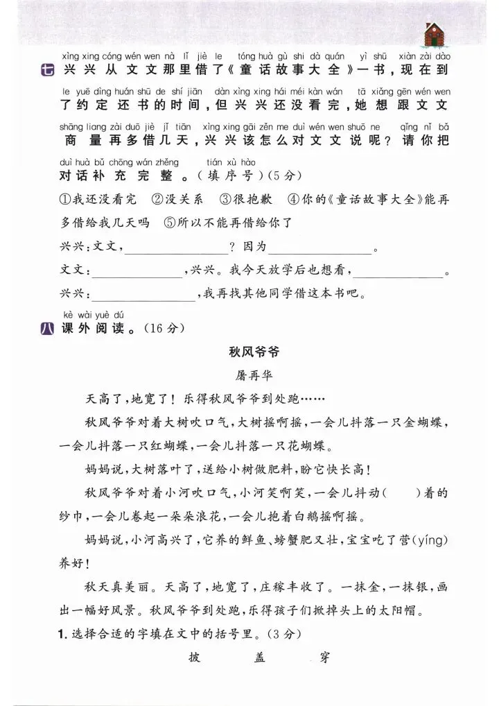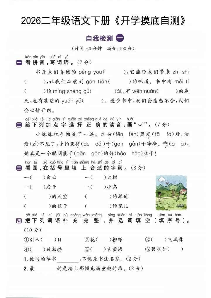 2026二年级语文下册《开学检测》