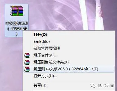 1.鼠标右击软件压缩包,选择“解压到 中文版VC6.0(32&64bit)”