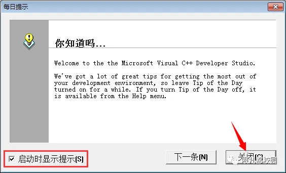 10.将“启动时显示提示”前面复选框的勾去掉,然后点击“关闭”