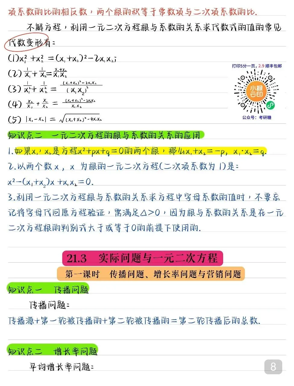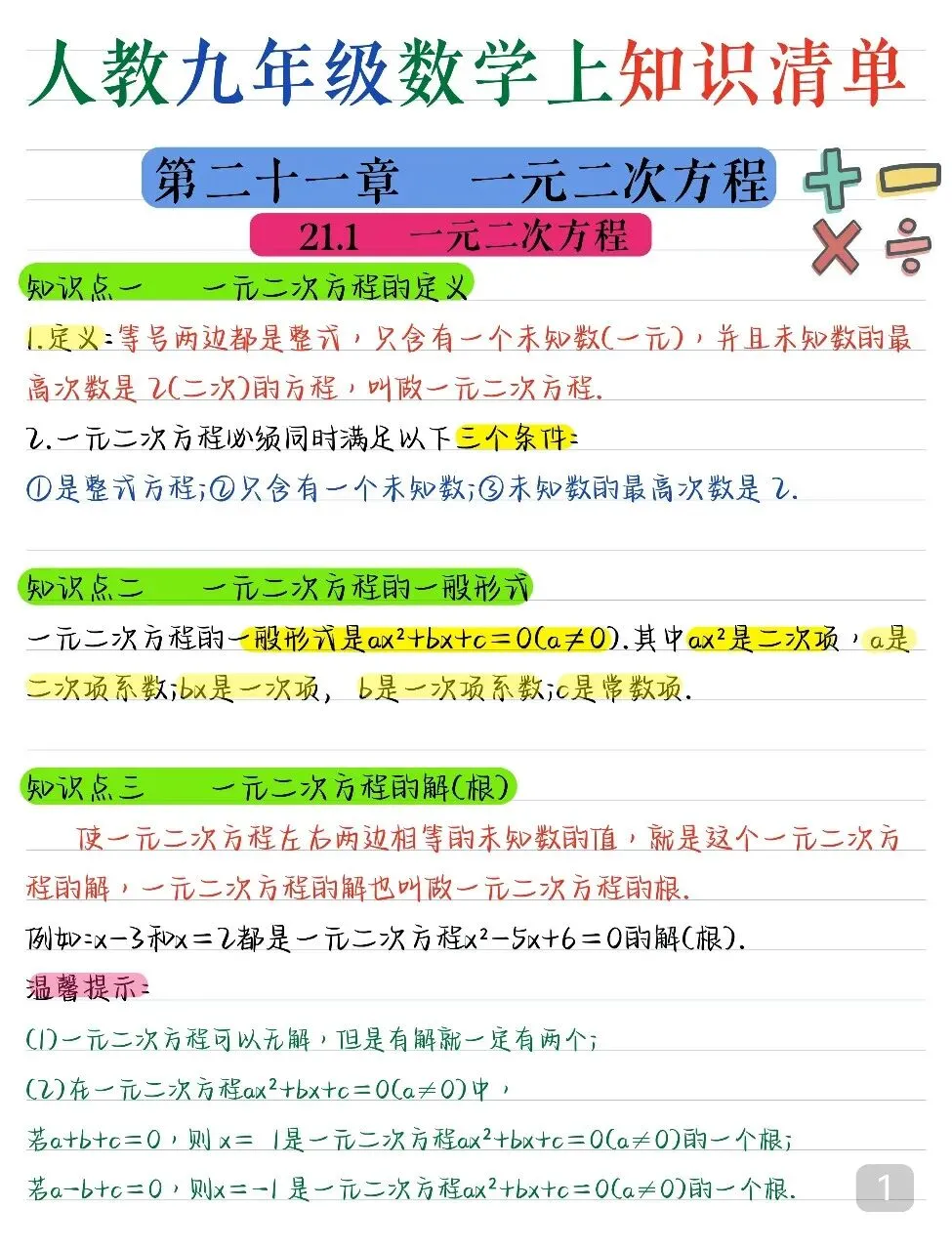 九年级(上)数学 核心知识点汇总.pdf