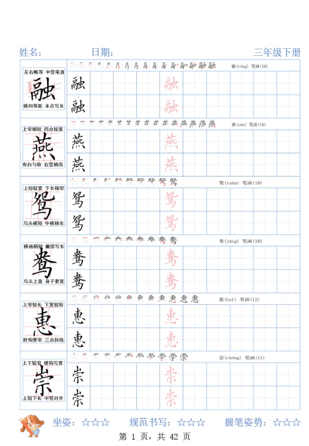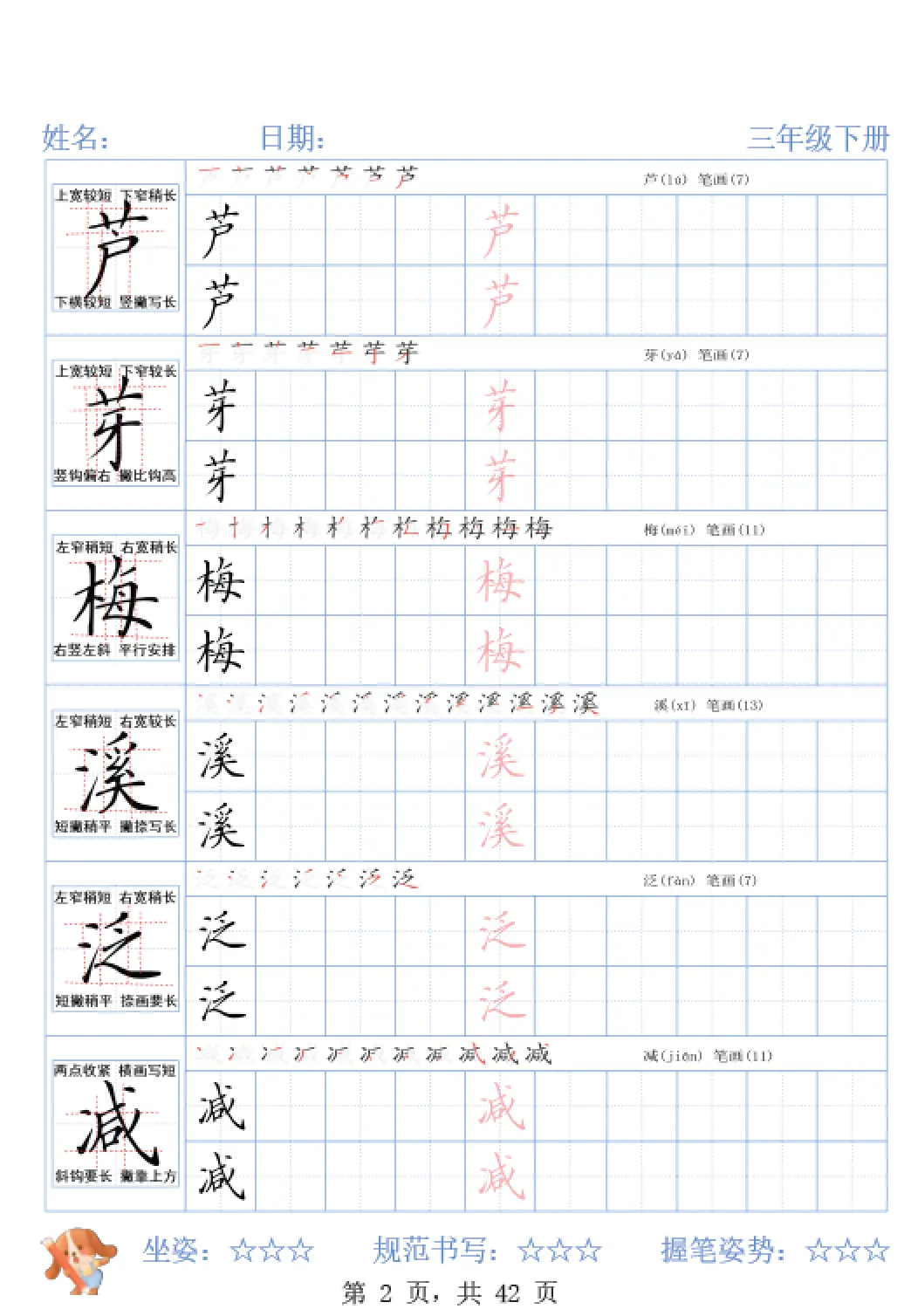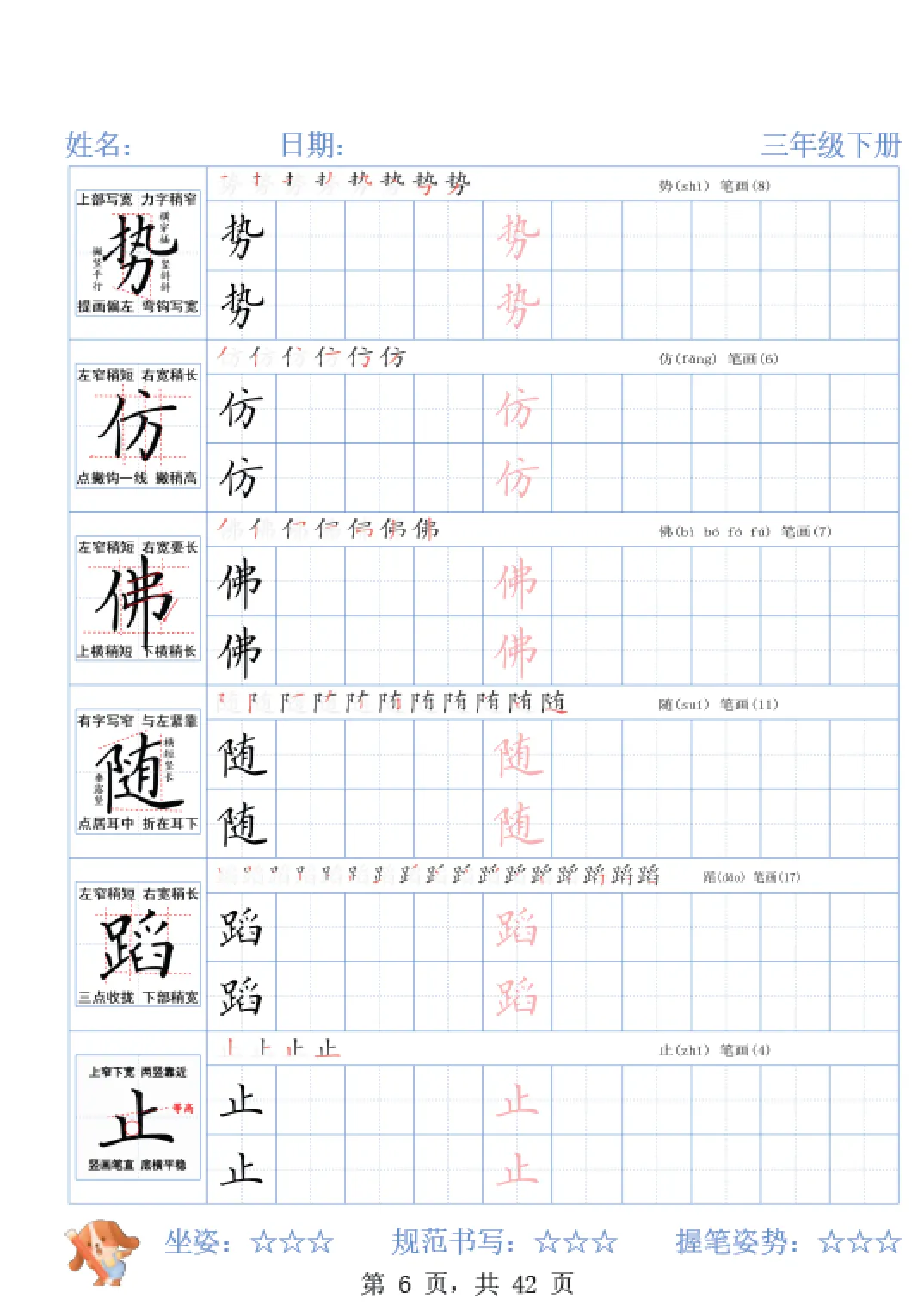 26春三年级下册语文精讲字帖,电子版可打印