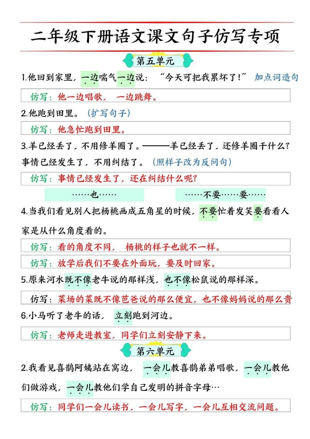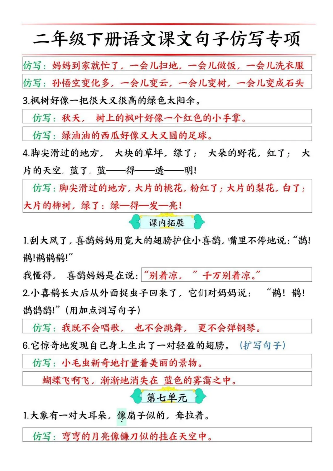 《二下语文必考仿写句子读背版》