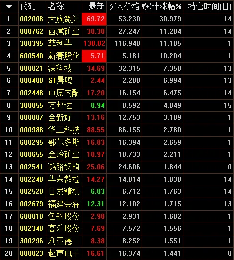 (13号小试项目账户最新持仓标的(时间单位:日))