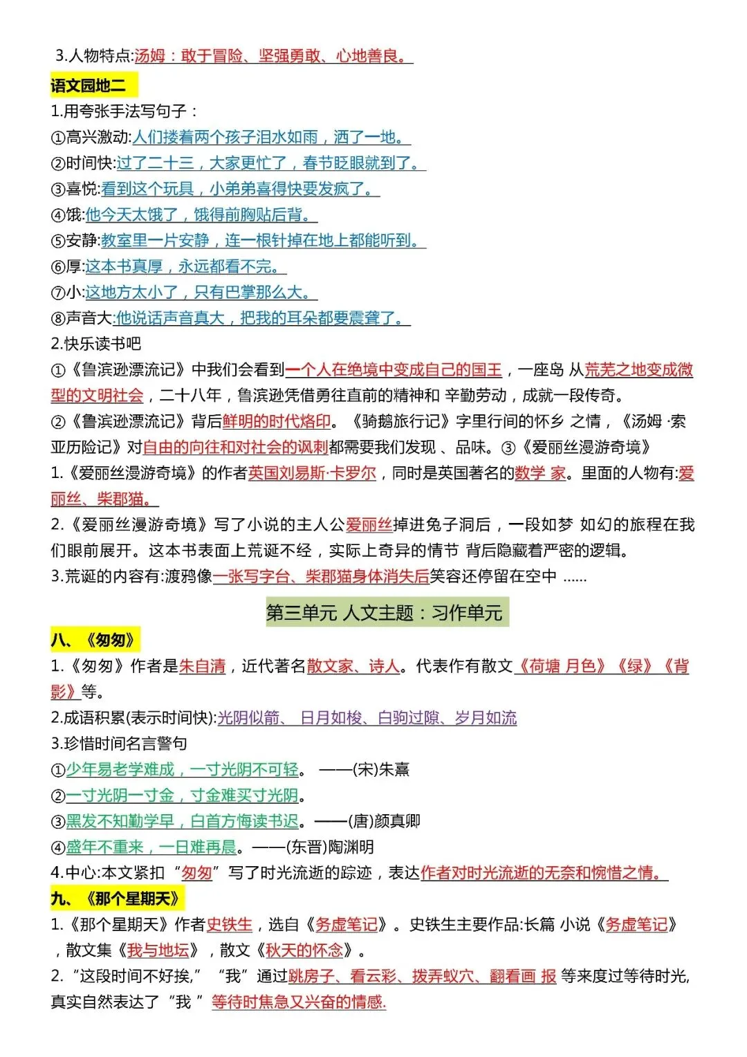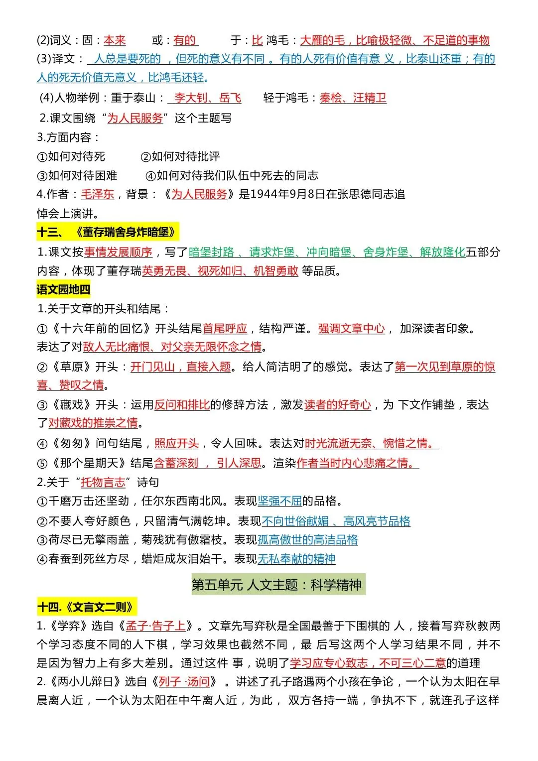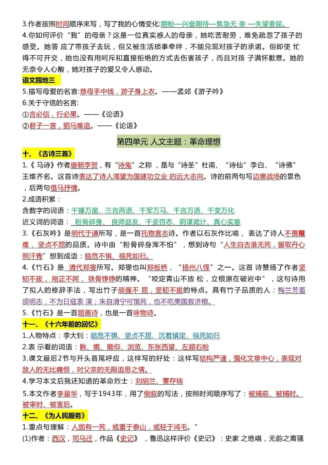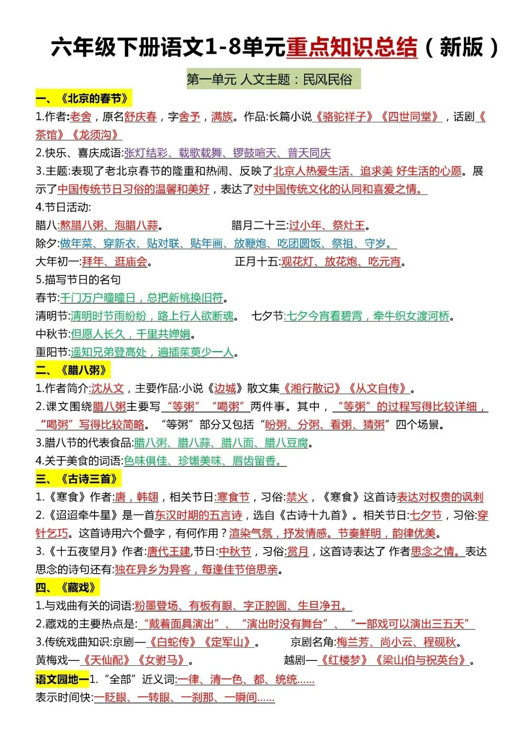 六年级下册语文全册《知识点汇总》,免费下载