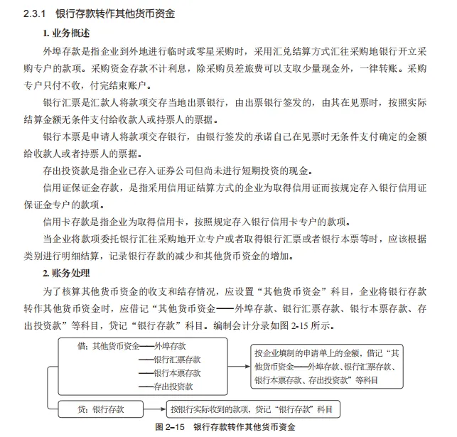 二、企业增加其他货币资金,借记本科目,贷记“银行存款”科目;减少其他货币资金,借记有关科目,贷记本科目。