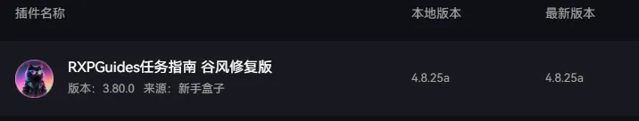 今天主要做一期关于RXP任务插件的设置分享,目前时光服主流插件是RXP谷风修复版,露露这种主流的插件配置包都有(露露需要在插件里面勾选此插件),如果没有的话可以在各大平台自行下载: