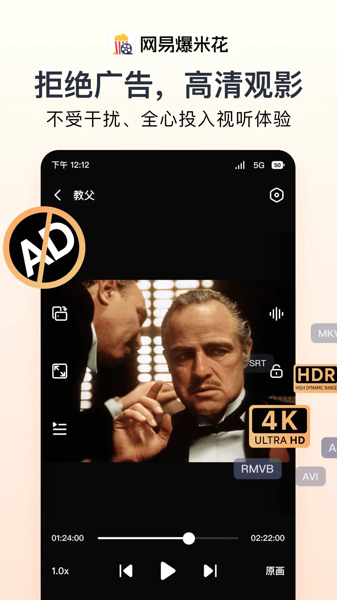 网易爆米花支持直连阿里云盘、百度网盘,支持WebDAV、SMB协议,导入本地资源。聚合电影、电视剧等影视资源,自动刮削匹配海报、评分、简介等媒体信息,搭建影视库。支持手机、电视、平板、电脑等跨平台观影,同步影片及播放记录。
