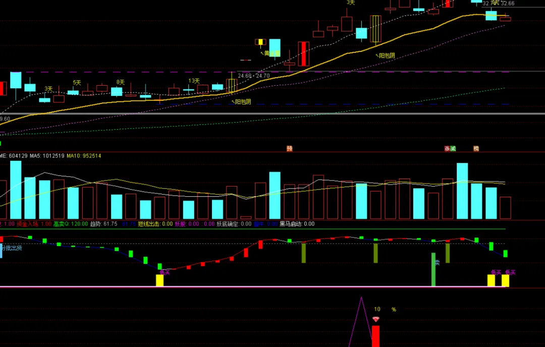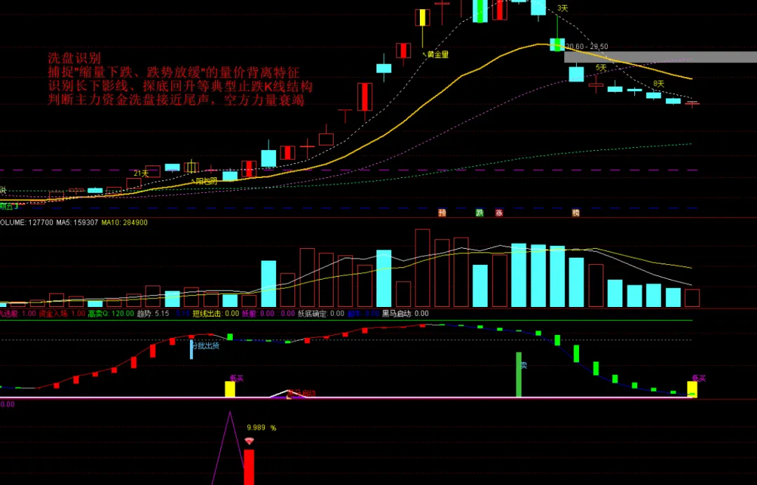 核心逻辑是”趋势确认+回调识别”的双重验证机制。该指标通过三层递进式过滤,精准定位强势G在上升通道中的最佳介入时机,既不做逆势抄底,也不盲目追涨,而是等待”洗盘结束、升势重启”的关键节点。