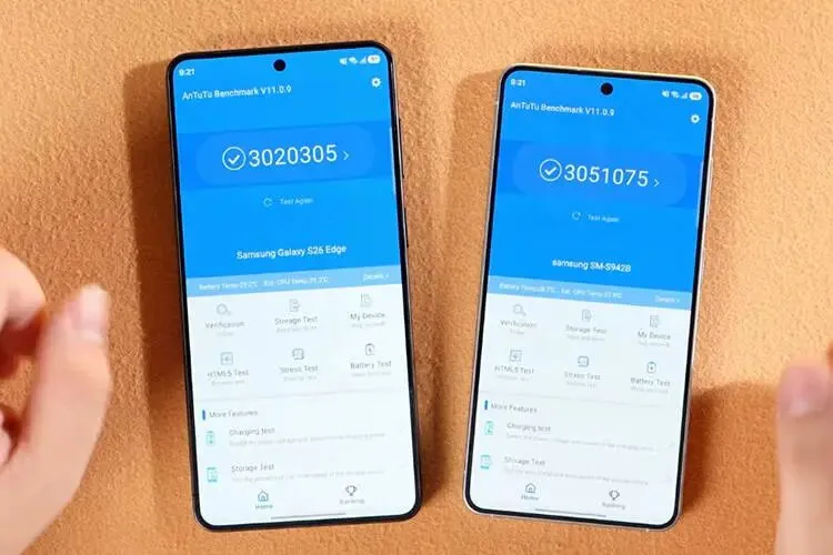 先来安兔兔Benchmark跑个分,S26和S26+的分数分别是305万和302万,就是不知为何S26+显示的是S26 Edge,这很玄学。