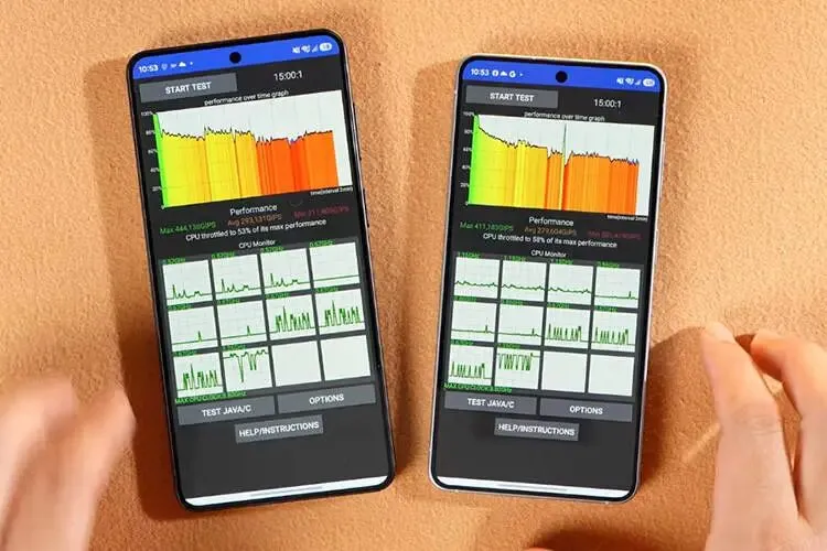 在3DMark测试下,同样是S26比S26+分数要高一些。而CPU降频测试中,在15分钟的测试里,只有前1分钟保持了最佳性能,最后都回落到60%至80%的区间。