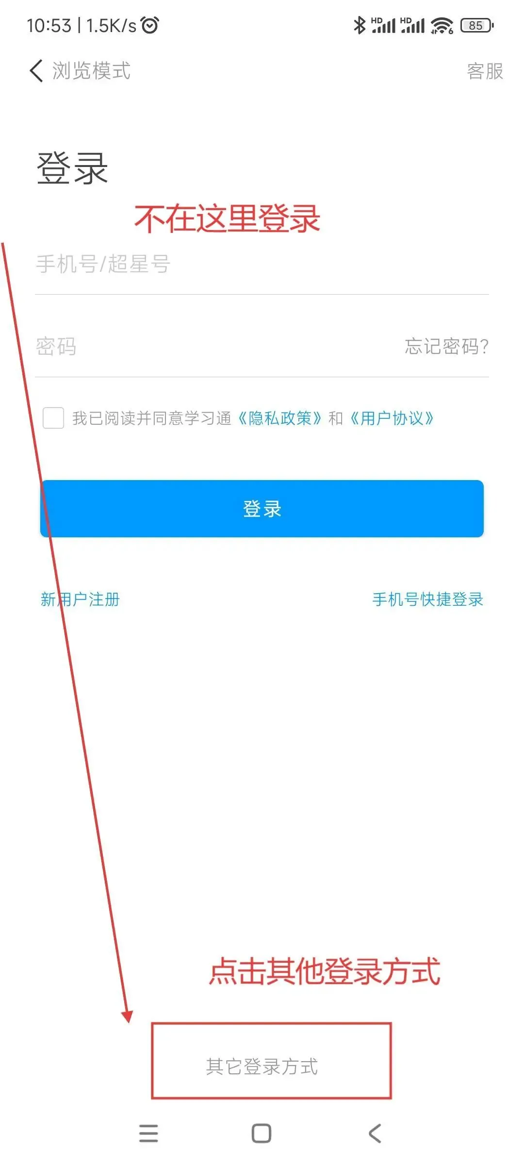 3.1. 如果学习通非第一次使用,已经注册、登录过其他账号