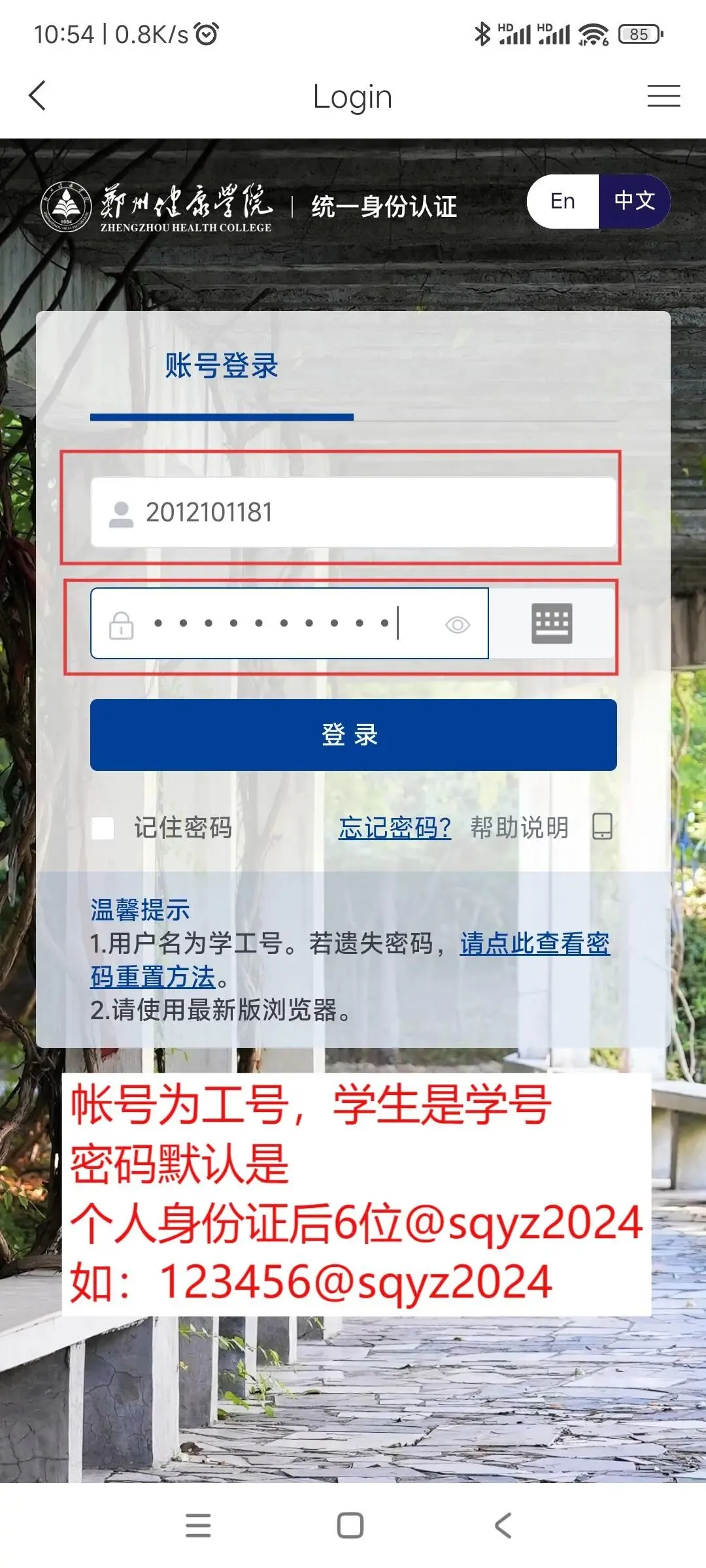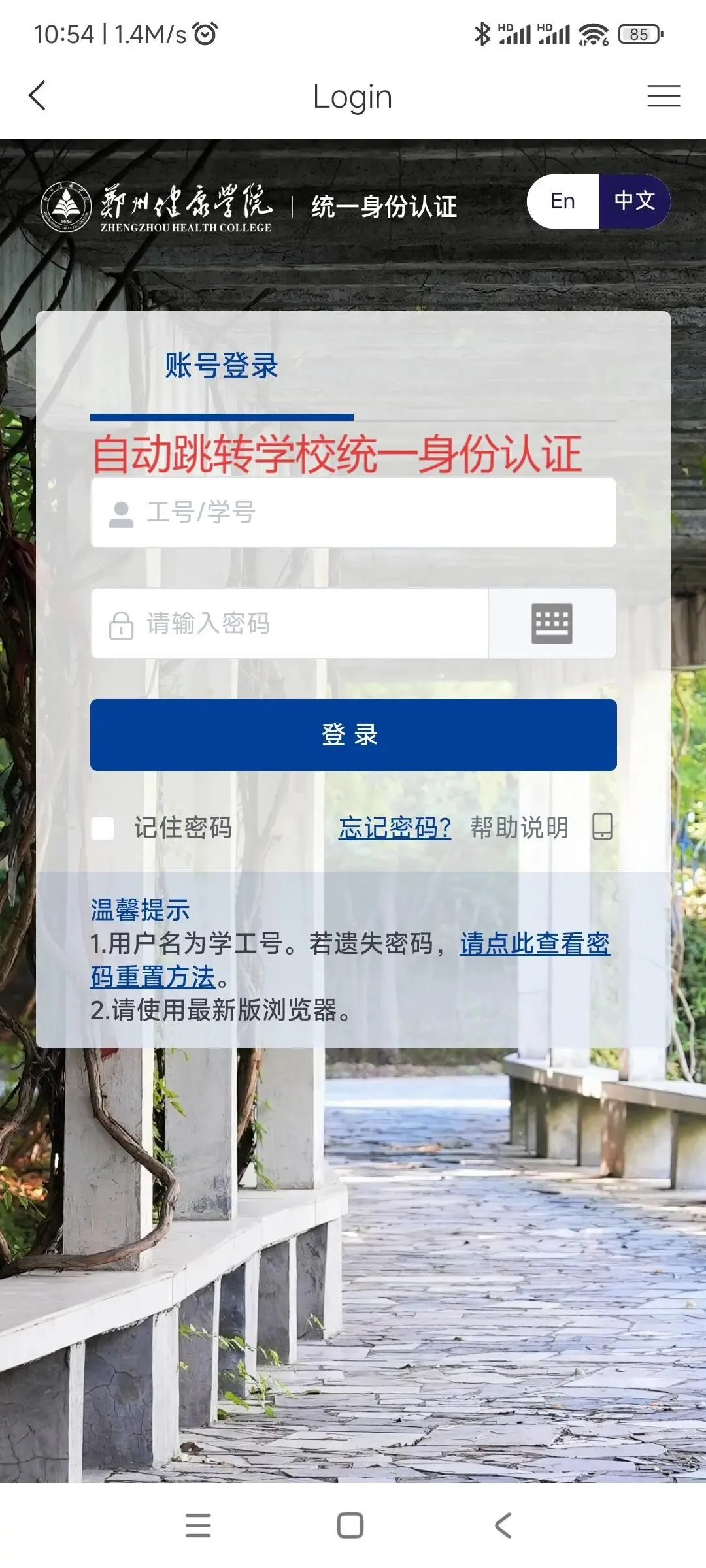 学校统一身份认证提示: