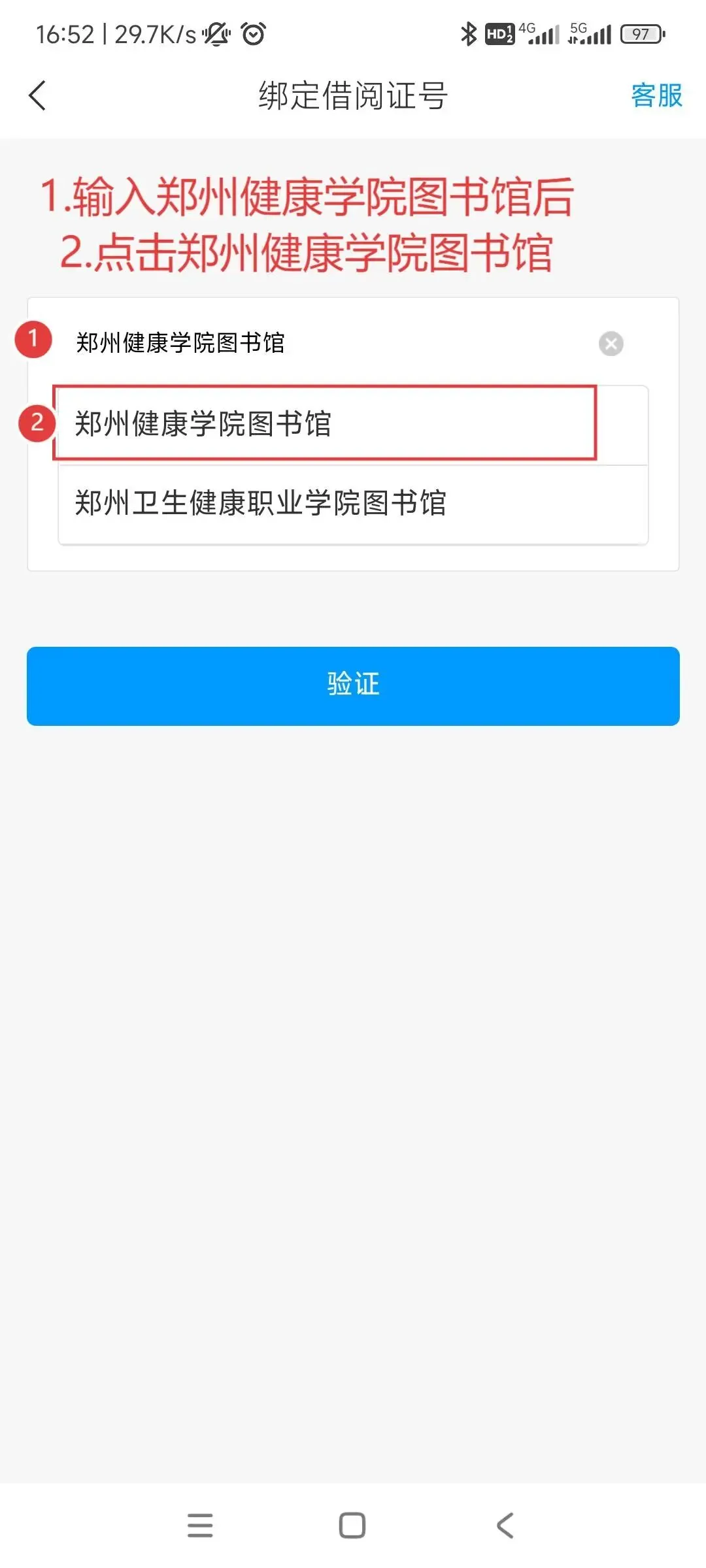 3.2. 需要进行郑州健康学院图书馆的绑定,绑定时同样需要统一身份认证后方可使用。