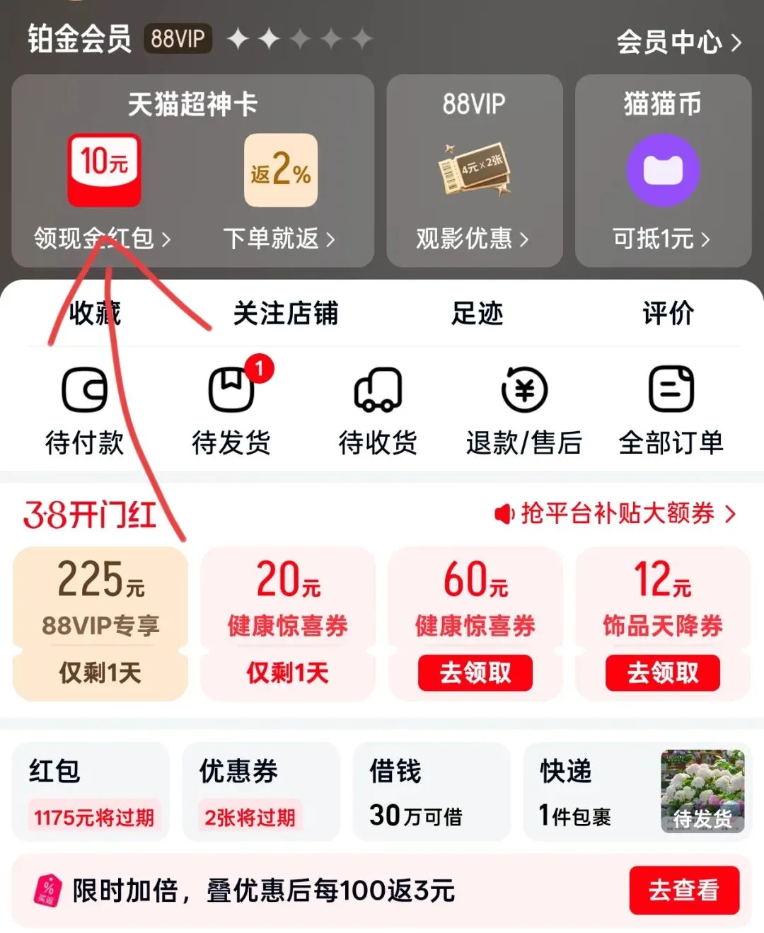 天猫app我的这个位置去领免单卡